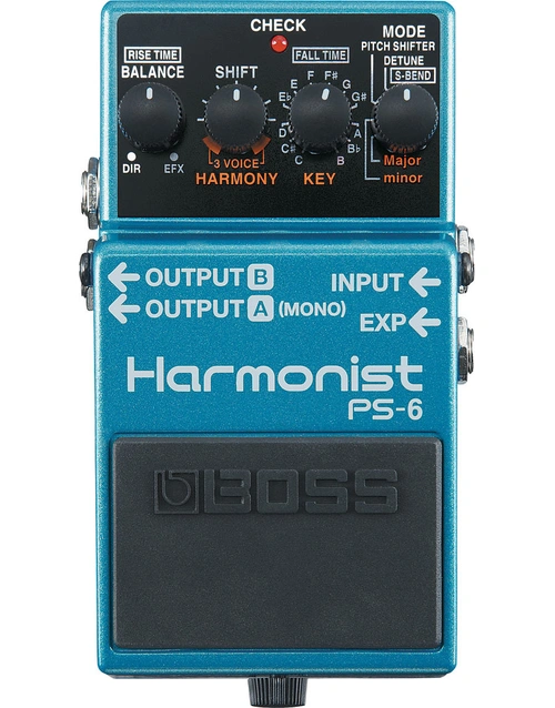 Meet the new BOSS harmonist, with four intelligent pitch-shift effects and three-voice harmony in one convenient unit. Among the effect modes are Harmony, Pitch Shifter, and Detune, plus the all-new Super Bend for authentic pedal-bending effects and wild three- and four-octave pitch sweeps. You can even control pitch with an optional expression pedal. The harmony function is fast and simple to use, and supports a variety of interval patterns. It’s easy to create rich, three-voice harmony: choose a major or minor key, and set SHIFT to 3-VOICE—that’s it! The PS-6 Harmonist is an unbeatable combination of superior sound quality, ease of use, and powerful pitch effects, all under one hood.