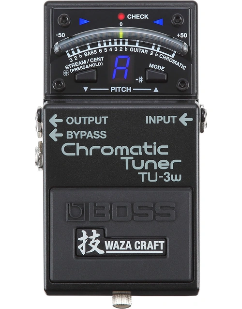 With the TU-3W, BOSS brings Waza Craft mojo to the world’s leading stompbox tuner. At its core, the TU-3W provides rock-solid tuning equivalent to the industry-standard TU-3. In true Waza tradition, the pedal’s benchmark functionality is further enhanced with BOSS skill and craftsmanship. Pure, uncolored signal transfer is essential for a tuner, and the TU-3W features redesigned circuitry with selectable buffered or true-bypass operation and the most transparent audio pass-through possible. Packing high-end performance for discriminating players, the TU-3W delivers a premium pedal experience only available from BOSS.