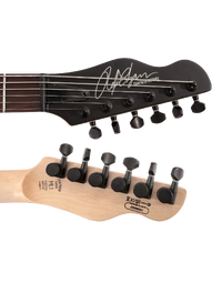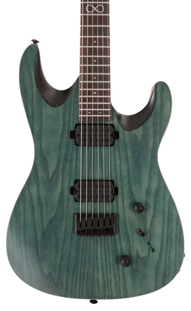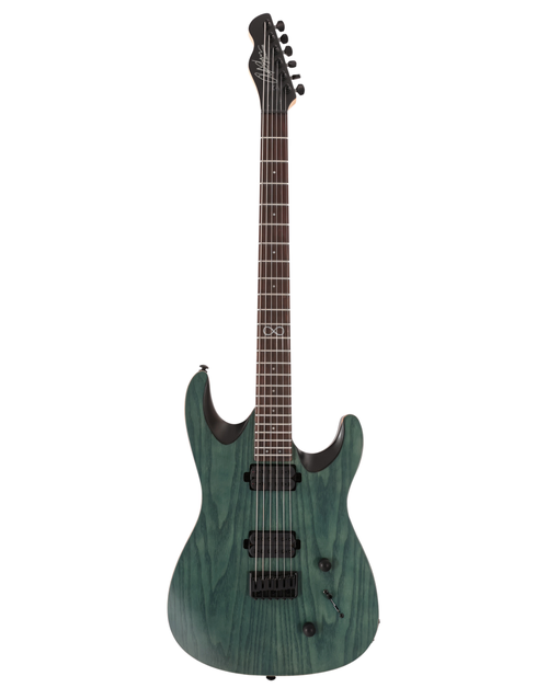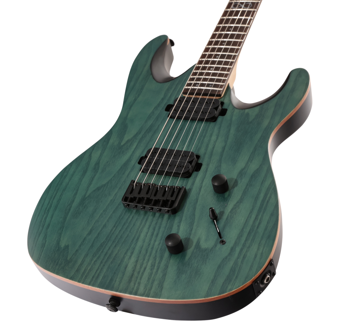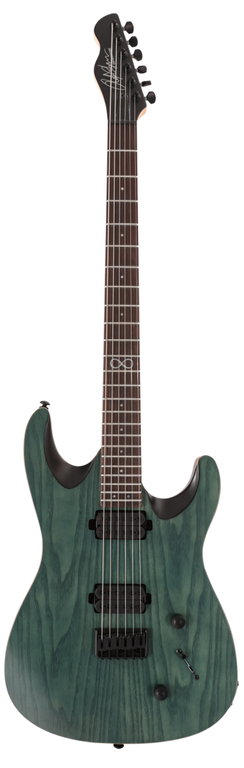 A modern recessed bolt-on neck construction with ergonomic cutaways, combined with a Maple neck and Macassar Ebony fingerboard are perfectly designed for hours of comfortable and tasty shredding. An Ash top with a Sage Green Satin finish makes for one head-turning guitar, as well as adding just enough lightness and brightness to the full-bodied beef of the Alder body.