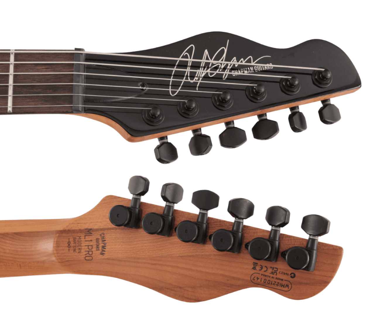 The Chapman ML1 Pro Modern Baritone is a sleek and contemporary masterpiece that delivers unparalleled sound and comfort. The guitar features a refined body contour, carved top, and a 28-inch scale length that's perfect for down-tuning. The Roasted Maple neck features the signature Chapman C profile, and is complemented by 24 stainless steel frets, rolled Macassar Ebony fretboard edges, and a satin finish. The lightweight Basswood body is perfect for a wide range of music styles, and the ergonomically-contoured lower horn allows easy access to all 24 frets. The guitar is equipped with top-of-the-line USA-made Seymour Duncan Pegasus/Sentient Humbuckers and Hipshot tuners.