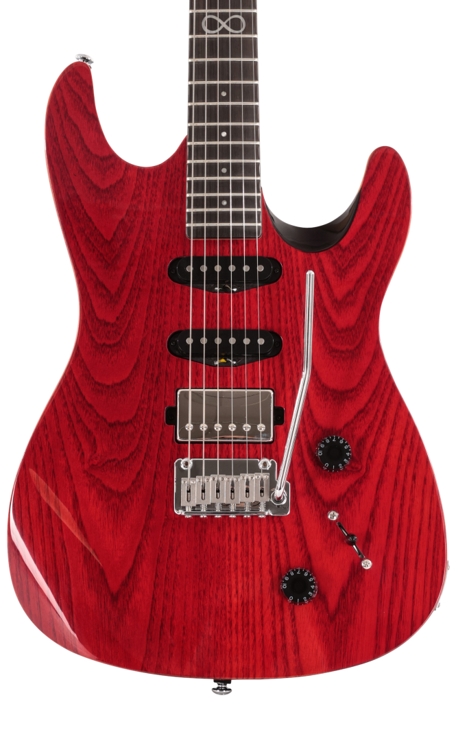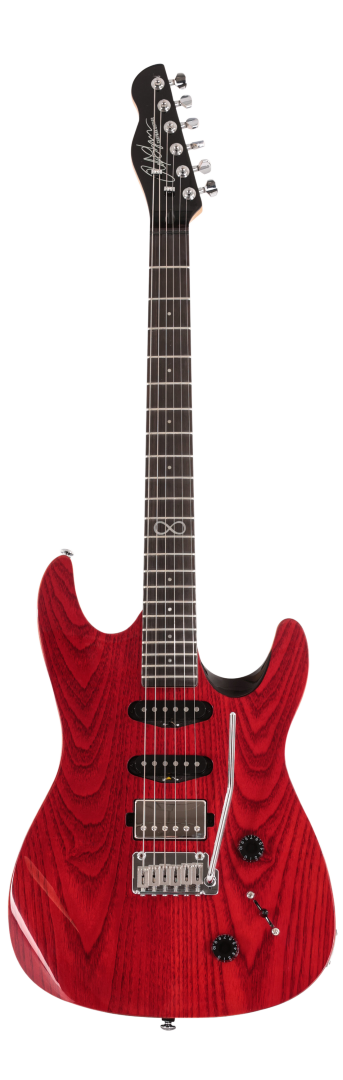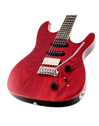 A modern recessed bolt-on neck construction with ergonomic cutaways, combined with a slick satin-finished Maple neck and Macassar Ebony fingerboard are perfectly designed for hours of comfortable and tasty shredding. An Ash top with a Deep Red Gloss finish makes for one head-turning guitar, as well as adding just enough brightness to the warmth of the Mahogany body.
