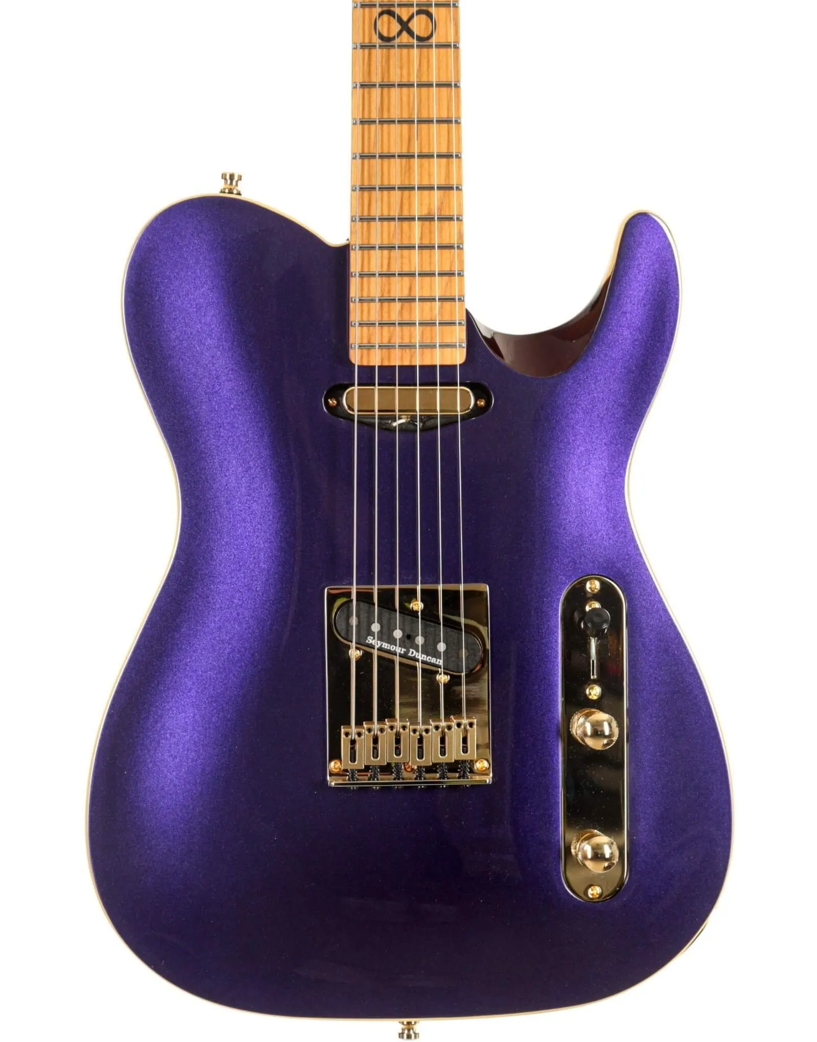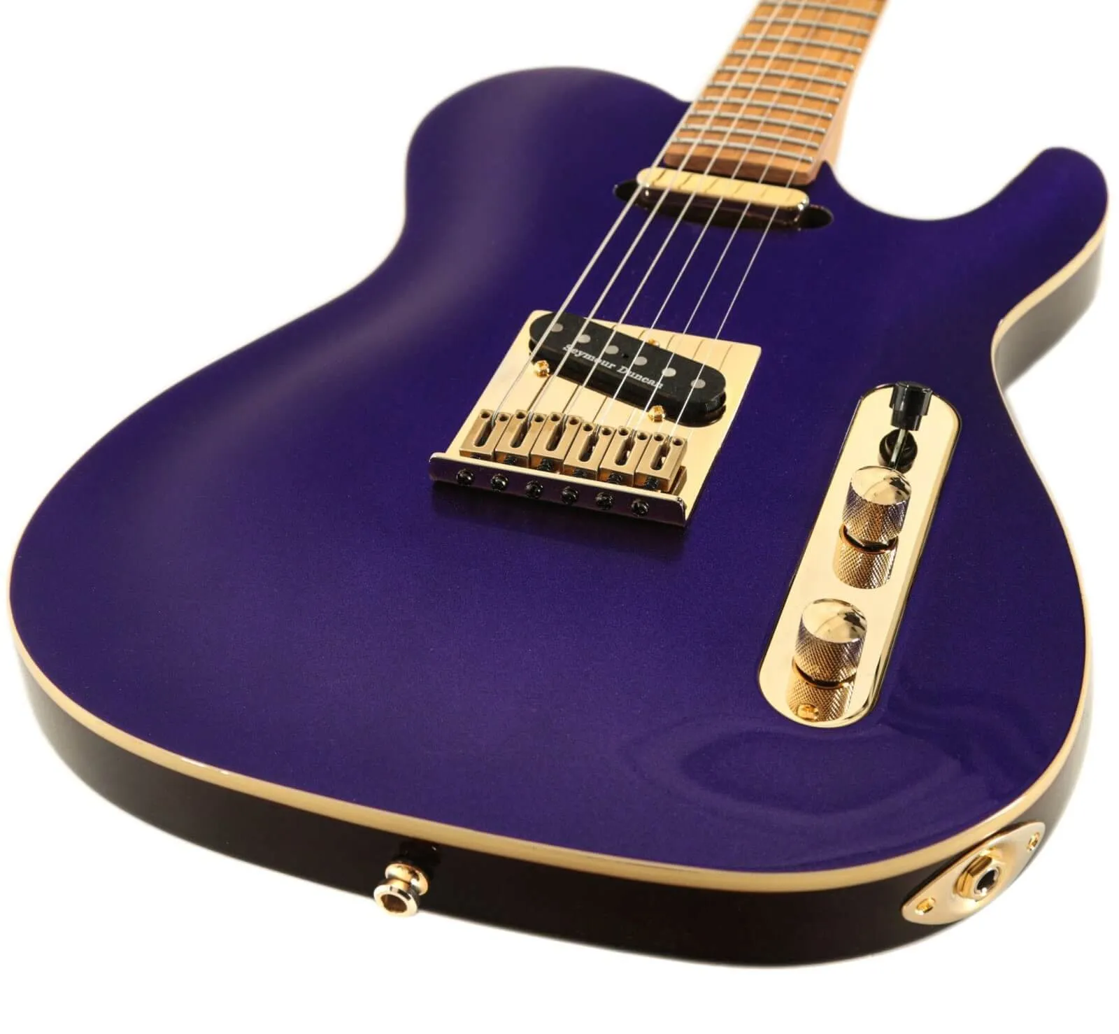 Behold the Chapman ML3 Pro Traditional Classic Purple Metallic Gloss, a guitar that glistens like a vintage limousine gliding through the rain, combining grace and style with a roaring engine, in its Seymour Duncan “Hot Tele” Single coil pickups.