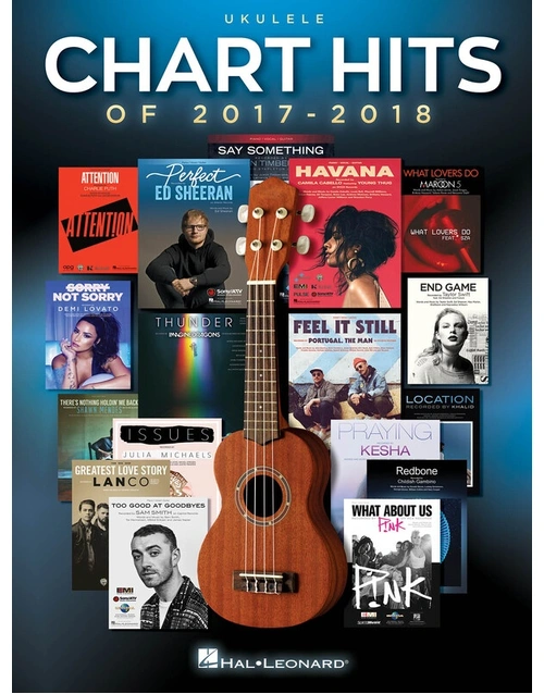 17 of the year's best made accessible for ukulele with melody, lyrics and chords in G-C-E-A tuning. Includes: Attention • End Game • Feel It Still • Greatest Love Story • Havana • Issues • Location • Perfect • Praying • Redbone • Say Something • Sorry Not Sorry • There's Nothing Holdin' Me Back • Thunder • Too Good at Goodbyes • What About Us • What Lovers Do.