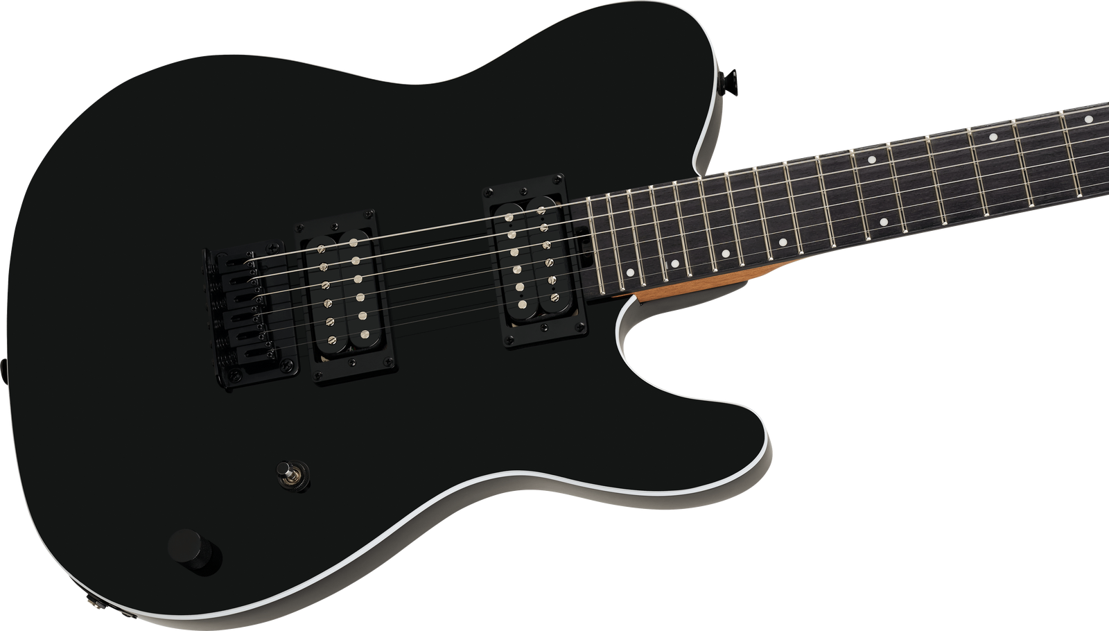 The pair of Charvel high-output humbuckers deliver a powerful voice suited to heavier styles while still maintaining clarity for articulate picking. The bridge pickup emphasises attack and upper-mid presence, making palm-muted riffs tight and controlled. The neck pickup adds depth and sustain for lead playing. A simple three-position toggle and single volume control keep the signal path direct and easy to adjust while playing.