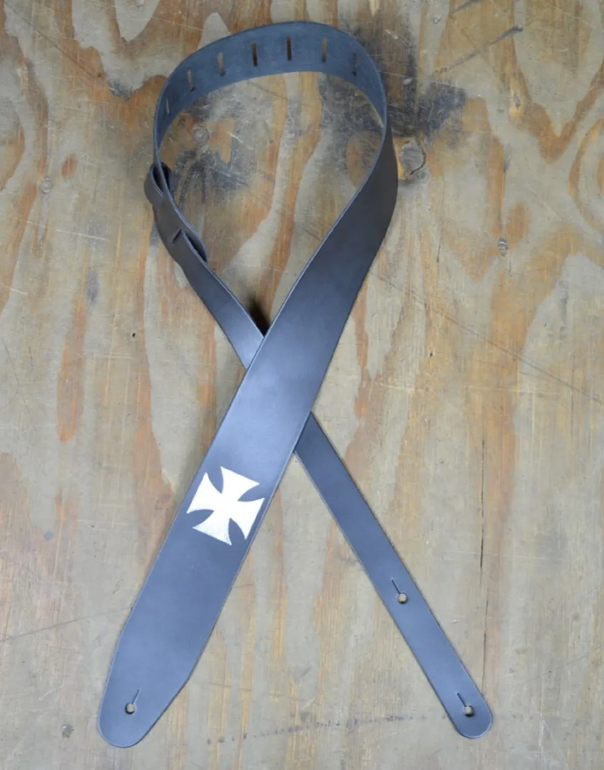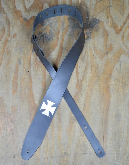 Colonial Leather 2.5" Printed Leather Strap Black with White Cross