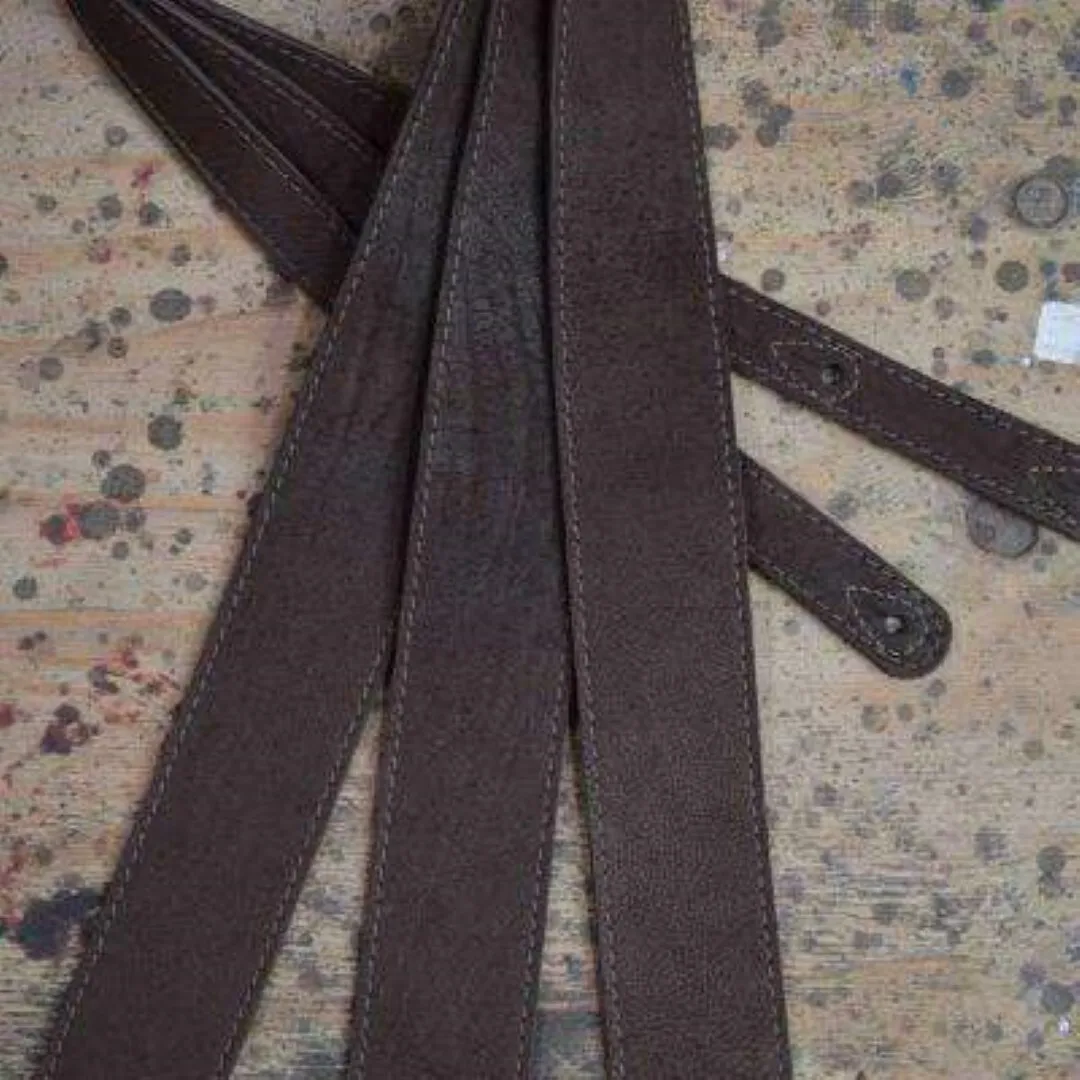 2.5” soft leather, suede backed and stitched guitar strap. There are superficial markings, spots & creases, to the finish of each Relic strap that give them all a unique character.