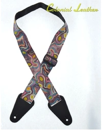 Bush Potato Dreaming Aboriginal Art fabric sewn on 50mm webbing with 3mm genuine leather ends. Slide adjustable in length from 80cm to 130cm. Made In Australia.
