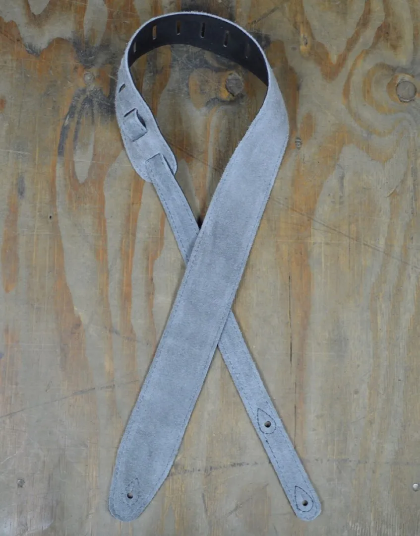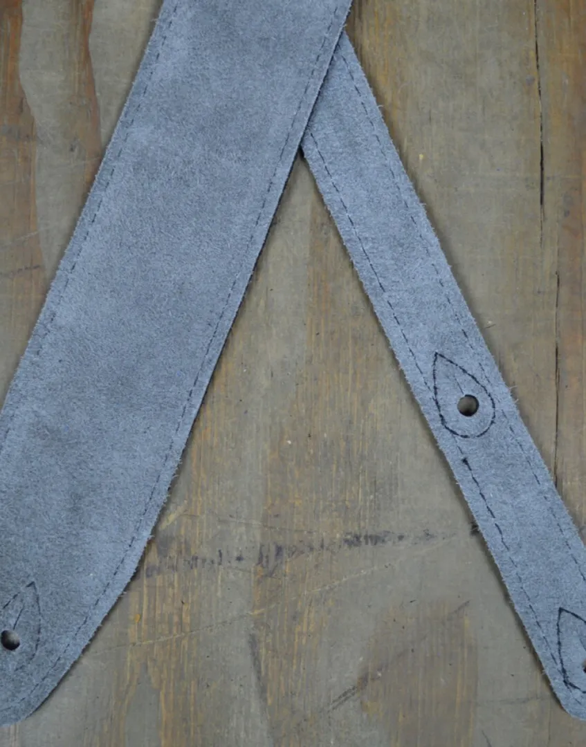 2.5″ suede backed and stitched suede guitar strap. Billet adjustable in length from 80cm to 135cm. Made in Australia.