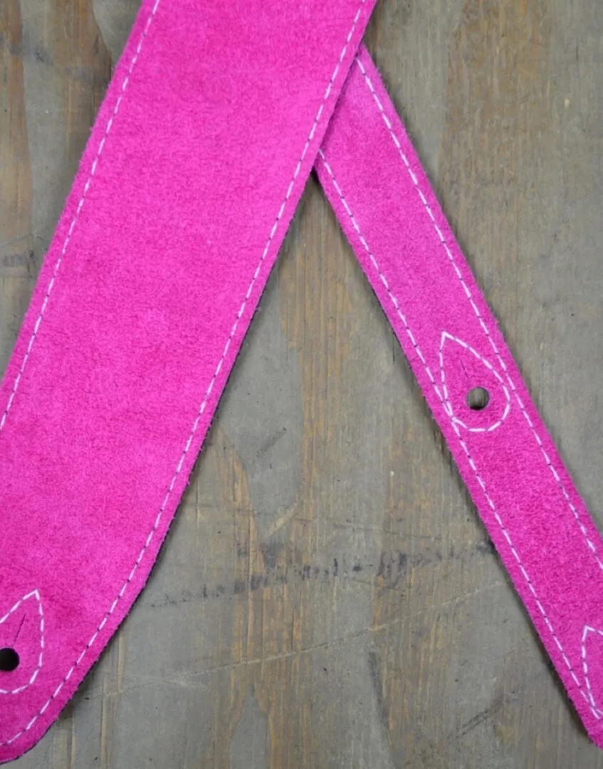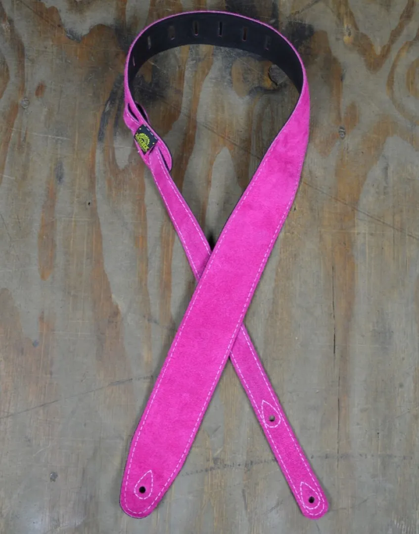 2.5″ suede backed and stitched suede guitar strap. Billet adjustable in length from 80cm to 135cm. Made in Australia.