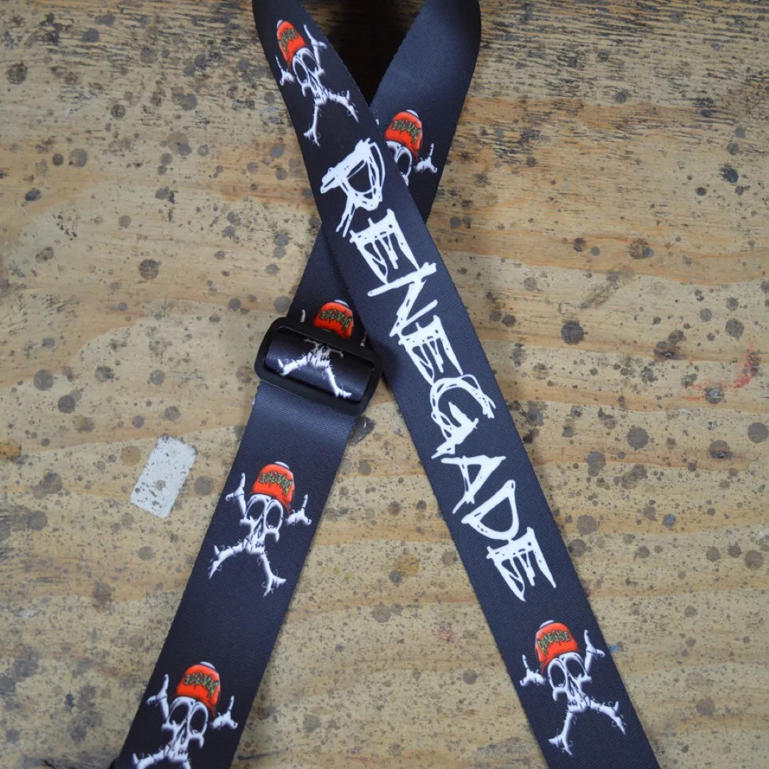 Colonial Leather Straps are Australian Made. The Colonial Leather Renegade Printed Webbing Strap is a printed 50mm webbing guitar strap with 3mm genuine leather ends. It is slide adjustable in length from 80cm to 135cm.