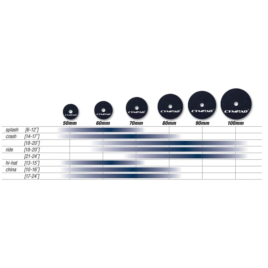 Cympad Moderator cymbal pads are made from Cympad's advanced cellular foam material and are designed to reduce cymbal volume, unwanted overtones, and sustain while increasing articulation. They are available in a choice of 6 sizes to allow drummers to incrementally control the tone of their cymbals in rehearsal, recording, and performance. They are also highly recommended for practice rooms and teaching studios.