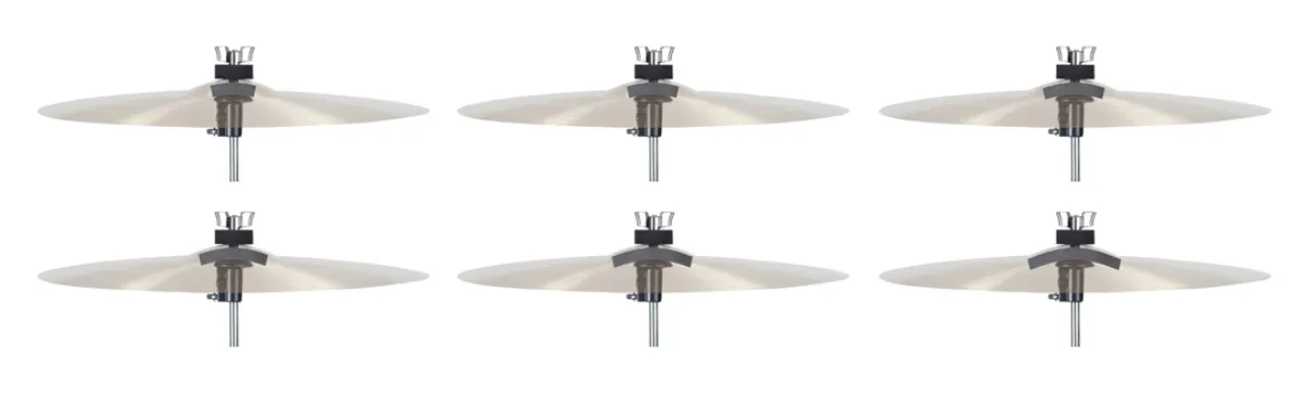 To use a Cympad Moderator, simply place it under your cymbal. See the Moderator Chart in images above to determine which size Cympad Moderator is right for you. This Super Set contains 1 each of a 50, 60, 70, 80, & 90mm (each is 15mm height) Moderator Cymbal Washer.