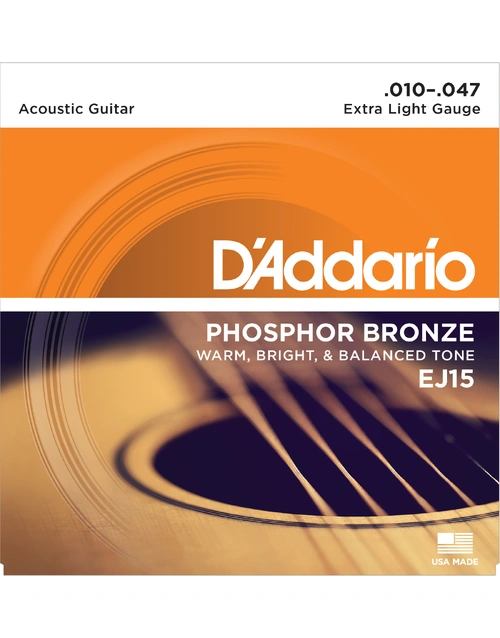 D'Addario's lightest gauge of acoustic strings, EJ15s are ideal for beginners or any player that prefers a softer tone and easy bending.