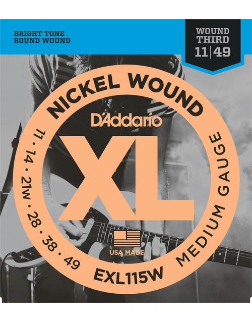 EXL115W is our popular medium gauging with a wound 3rd string. XL Nickel Wound electric guitar strings, long recognized as the industry standard, are ideal for a wide range of musical styles.
