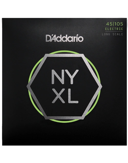 D'Addario's NYXL electric bass string sets feature the innovative combination of NYXL nickel-plated wrap wire wound on our NY Steel core for expanded dynamic range and harmonic response. NYXL45105 is a hybrid set, optimal for players looking for a string set with both flexibility and deep, powerful lows. These strings are designed for long scale basses (34”+) and have a taper at 36 – 7/8”.