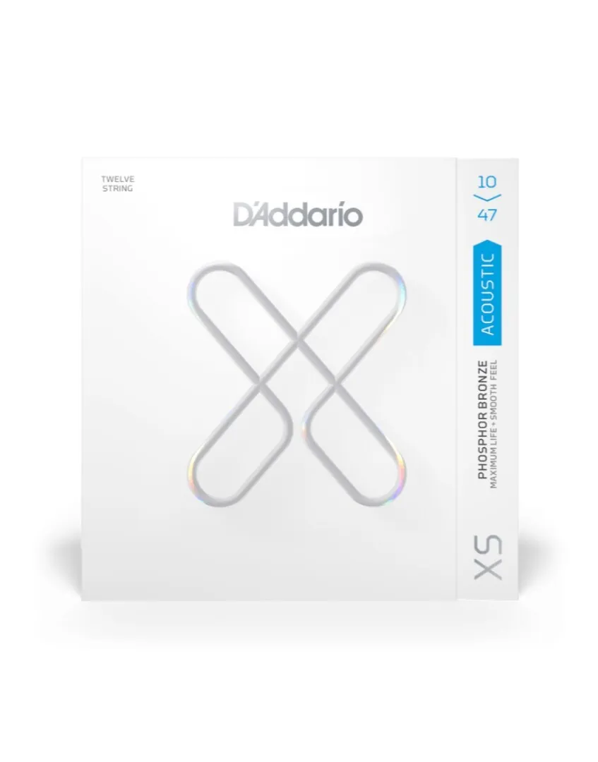 Introducing the D'Addario XSAPB1047-12 XS Coated Phosphor Bronze Acoustic Guitar Strings for 12-string guitars. These strings feature the revolutionary XS coating, offering the longest lifespan among D'Addario acoustic strings. The ultra-thin film coating provides maximum protection while maintaining a remarkably smooth feel, eliminating the need for frequent string changes and allowing for extended playability without sacrificing comfort.