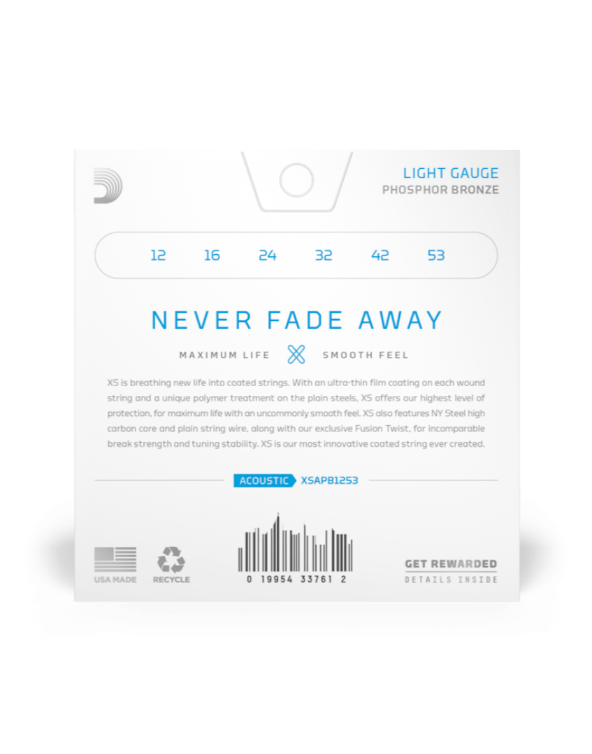 Experience a new level of longevity and exceptional tone with D'Addario XSAPB1253 XS Coated Phosphor Bronze Acoustic Guitar Strings Light 12-53. These strings feature an innovative XS coating that offers maximum protection while maintaining a smooth feel, ensuring extended playability without compromising tone.