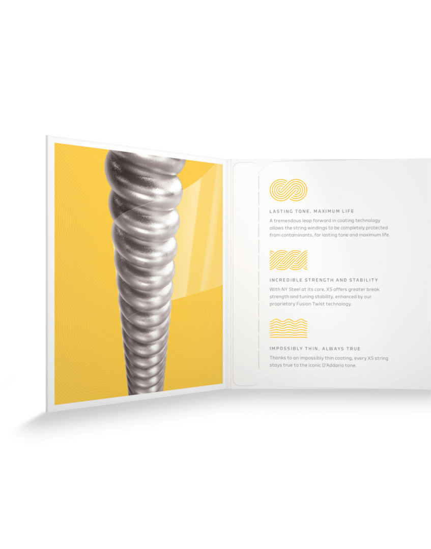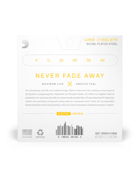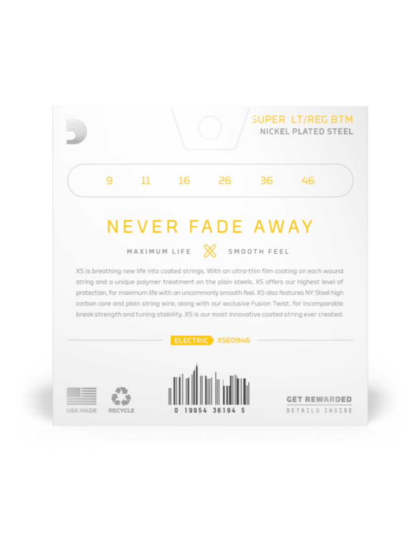 Featuring a NY Steel core, reformulated nickel-plated steel wrap wire, and Fusion Twist technology, the XS Nickel strings provide superior strength, unrivaled tuning stability, and a tonal palette enriched with richer harmonics, exceptional clarity, and remarkable definition for every sweep, slide, and bend. The 09-46 Super Light Top / Regular Bottom gauge set delivers a pronounced low-end tone while maintaining flexibility for expressive bends.