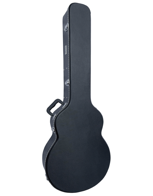 Acoustic bass standard case. Wood case, lined, with chrome hardware.