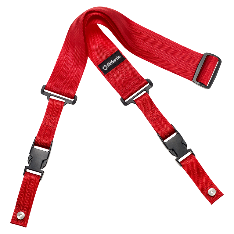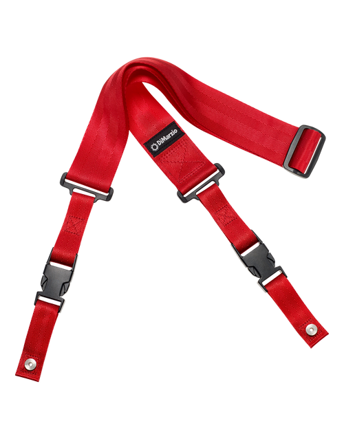 The DiMarzio Clip Lock Strap in red is perfect for guitarists who want to add a touch of boldness to their guitar setup. Made with high-quality nylon and automotive seatbelt material, this strap is both strong and comfortable. The heavy-duty plastic clip ensures your guitar stays secure, making it a reliable choice for gigging musicians.