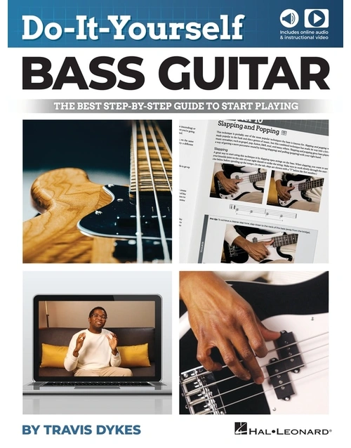 Do-It-Yourself Bass Guitar is a fun way to get started playing on your own. Using well-known pop, rock, and funk tunes, you will be given step-by-step instructions on what you need to know to get started and sounding like a pro in no time. Includes audio tracks for demonstration and play-along, plus video instruction by bass guitarist and instructor Travis Dykes.