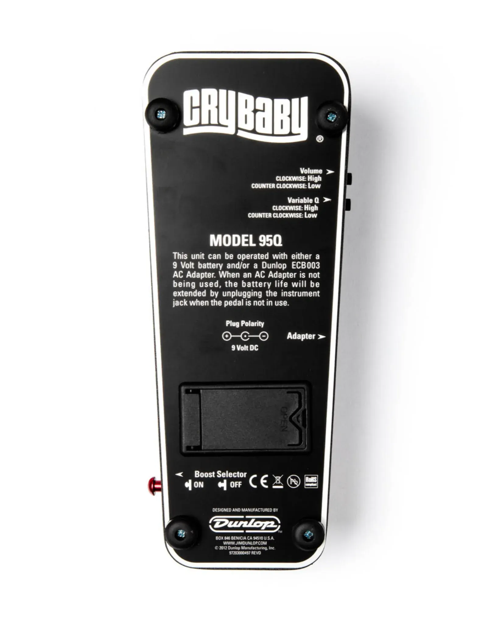The 95Q can be powered by a 9-volt battery or compatible 9-volt power supplies (current draw is 1.8mA). This configuration suits players who want flexible tone shaping and immediate on-off response in a single unit.