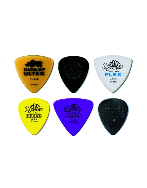 The Bass Pick Variety Pack brings together a collection of shapes and materials that perfectly complement the low end and playability of the electric bass, whether you're playing hard and fast or leaning back with a tight, thumping groove. Contains one each: Ultex Tri 1.14mm, Delrin Prime Grip .96mm, Tortex Flex Tri 1.0mm, Tortex Standard .73mm, Tortex Tri 1.14mm and Max-Grip 1.0mm. Contains 6 picks in a header card display bag.