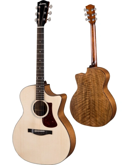 The Eastman AC222CE is the perfect player's guitar. Featuring a solid Sitka Spruce top and Solid Ovangkol back and sides, the grand auditorium pushes out a beautifully rich and balanced sound. The premium quality tonewoods look incredible with a satin TrueTone finish. TrueTone is an environmentally friendly finish, with the same consistency and superior tonal characteristics as nitrocellulose. An Ebony fingerboard sits atop a Traditional Even "C" shaped Mahogany neck, making playing a breeze. The installed Fishman Sonitone system ensures the guitar sounds great when amplified as well.