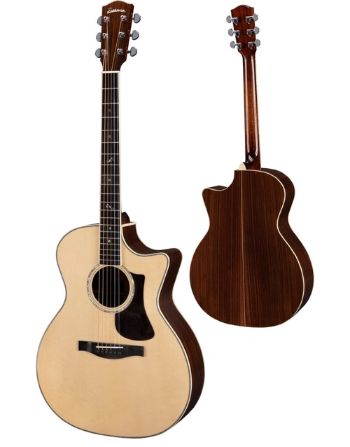 The Eastman AC422CE Grand Auditorium Solid Spruce/Rosewood C/E features a solid Sitka Spruce top, and solid Rosewood back & sides, for a naturally resonant and well-balanced acoustic tone. The premium quality tonewoods look incredible with a Gloss TrueTone finish. TrueTone is an environmentally friendly finish, with the same consistency and superior tonal characteristics as nitrocellulose. A Traditional Even C-profile Mahogany neck, with an Ebony fretboard, offer smooth playability, and a grand auditorium body shape with cutaway give you hours of comfortable playability. An LR Baggs Element EAS VTC ensure your Eastman sounds just as good plugged in, as it does acoustically.