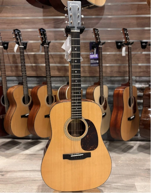 At Riffs & Licks Music, we think the Eastman E10D-TC Traditional Thermo-Cured Solid Adirondack/Mahogany Dreadnought Acoustic Guitar is a great option for musicians looking for a premium quality all-solid dreadnought workhorse, with a played-in tone and feel.
