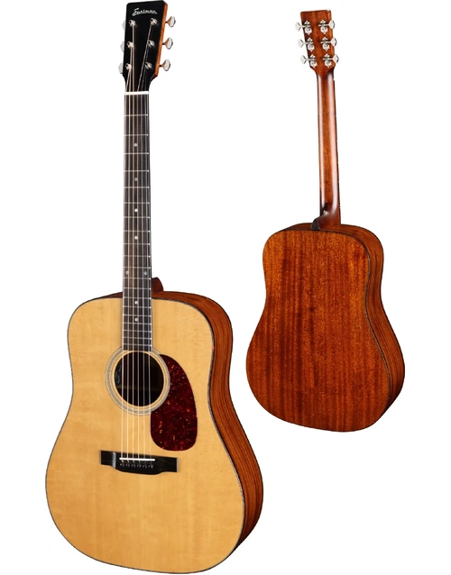 The Eastman E1D-DLX is a high-quality dreadnought acoustic-electric guitar, delivering rich tone, powerful projection, and exceptional craftsmanship. Featuring a solid Sitka spruce top and solid sapele back and sides, this guitar offers a warm, balanced sound with clear highs and a strong low end. The hand-scalloped X-bracing enhances resonance and responsiveness, making it ideal for both strumming and fingerstyle playing. A Traditional Even "C" mahogany neck with an ebony fingerboard ensures smooth playability, while the 25.4” scale length provides dynamic expression. The built-in Fishman Presys VT electronics allow for natural-sounding amplification, making it stage and studio-ready. Elegant details such as tortoise binding, pearl dot inlays, and a Truetone gloss finish complete the refined aesthetic. Includes a deluxe padded Eastman gig bag for protection.