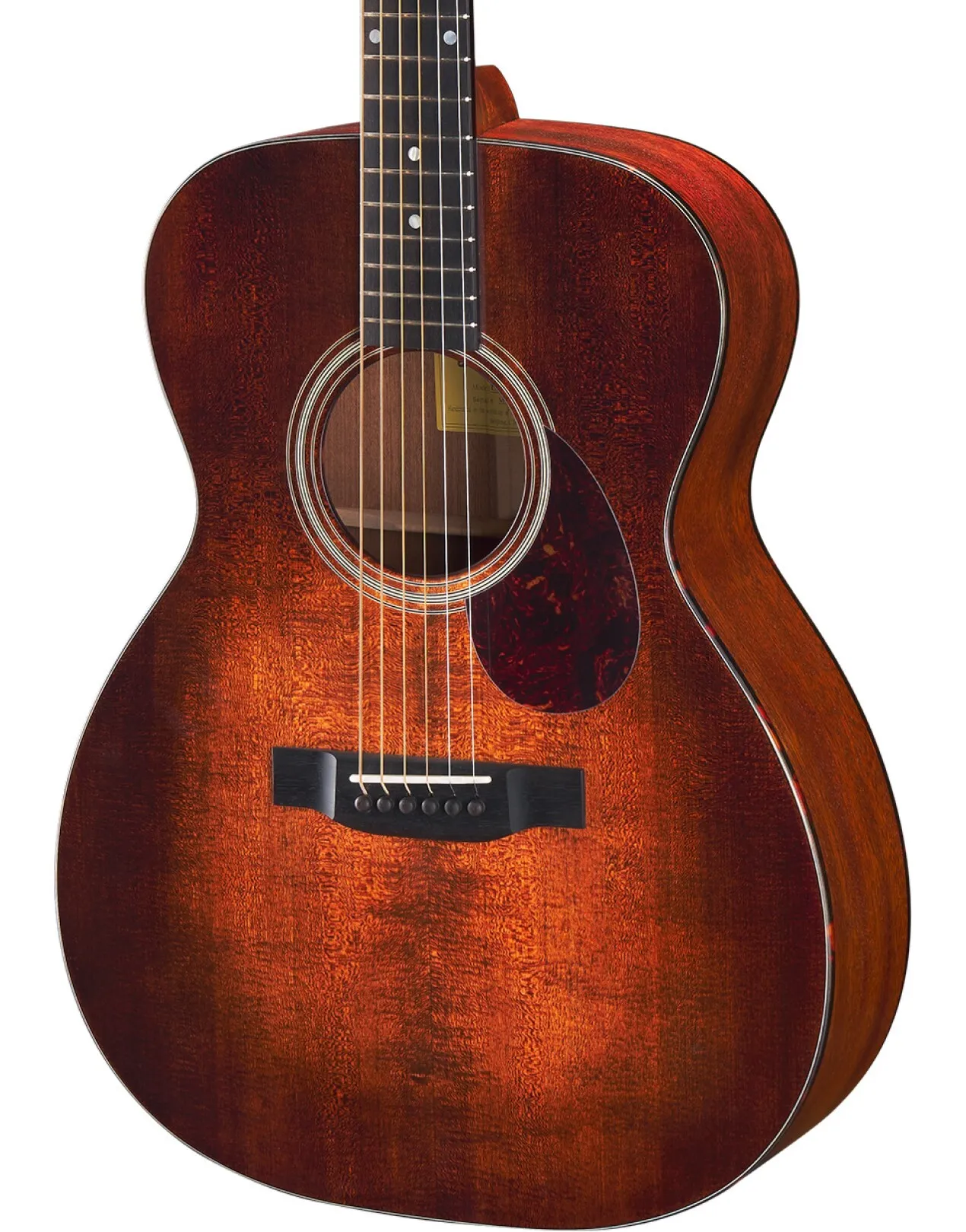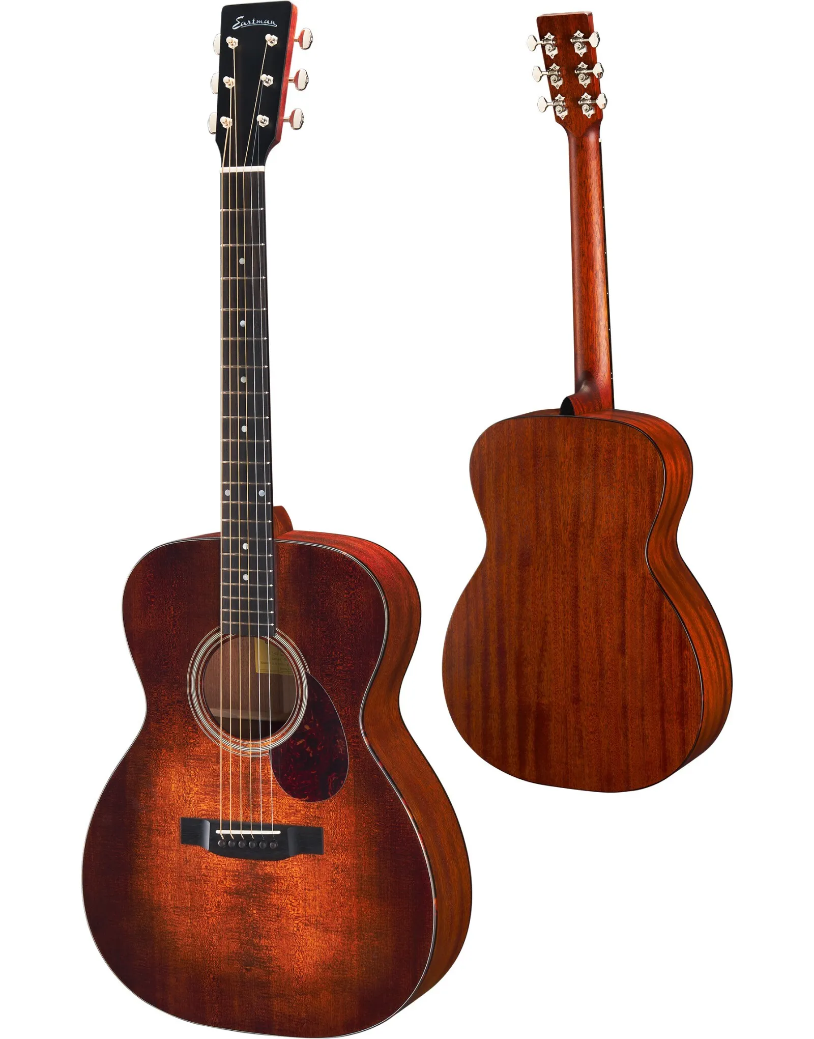 The Eastman E1OM is the perfect strummer's Orchestra model. Featuring all solid woods, the solid Sitka spruce top and solid Sapele back and sides produce a wonderfully rich and organic sound, rarely heard at this price point! An ebony fretboard, even "C" shape neck, bone nut, hand scalloped X bracing and open pore finish all feature to make this a well spec'd instrument for beginner or pro.