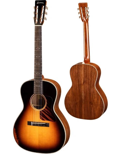 The Eastman E22OOSS/V-SB Antique Varnish Solid Spruce/Walnut Slope Shoulder OO Antique Sunburst Varnish is built using many of the same methods and materials as the golden era of acoustic guitar tone - the 30s and 40s. This slope shoulder beauty harkens back to models of years gone past, with a super smooth, super thin Antique Varnish Sunburst finish that not only fits the vintage aesthetic, but lends the E22OOSS/V an incredible amount of resonance and a played-in feel. With a solid Adirondack Spruce top, solid Walnut back & sides, Mahogany neck, and Ebony fretboard, bridge and bridge pins, this guitar sings with a beautifully balanced tone. Hand-Carved Scalloped X bracing, Vintage-Style open-gear tuners, Ivoroid binding, Pearl Diamond inlays and a Firestripe pickguard round out the vintage aesthetic.