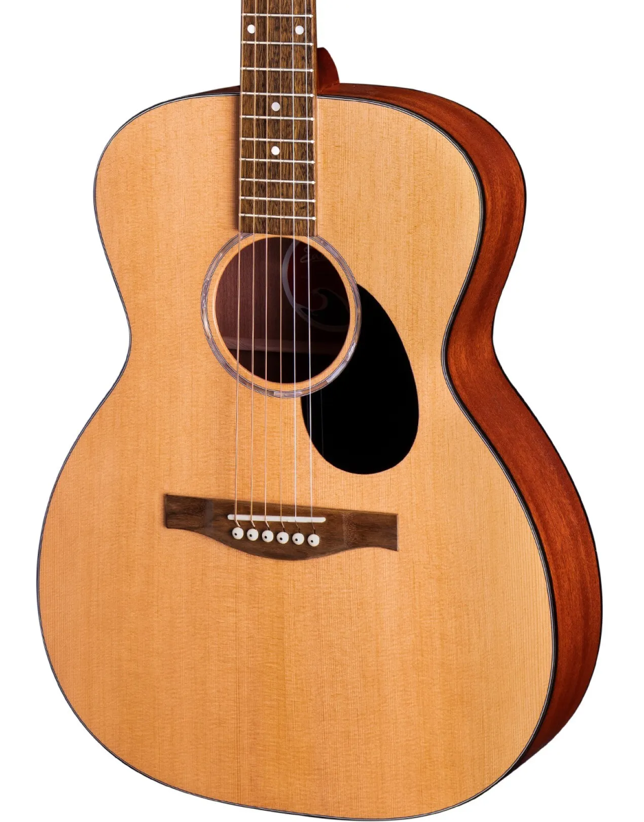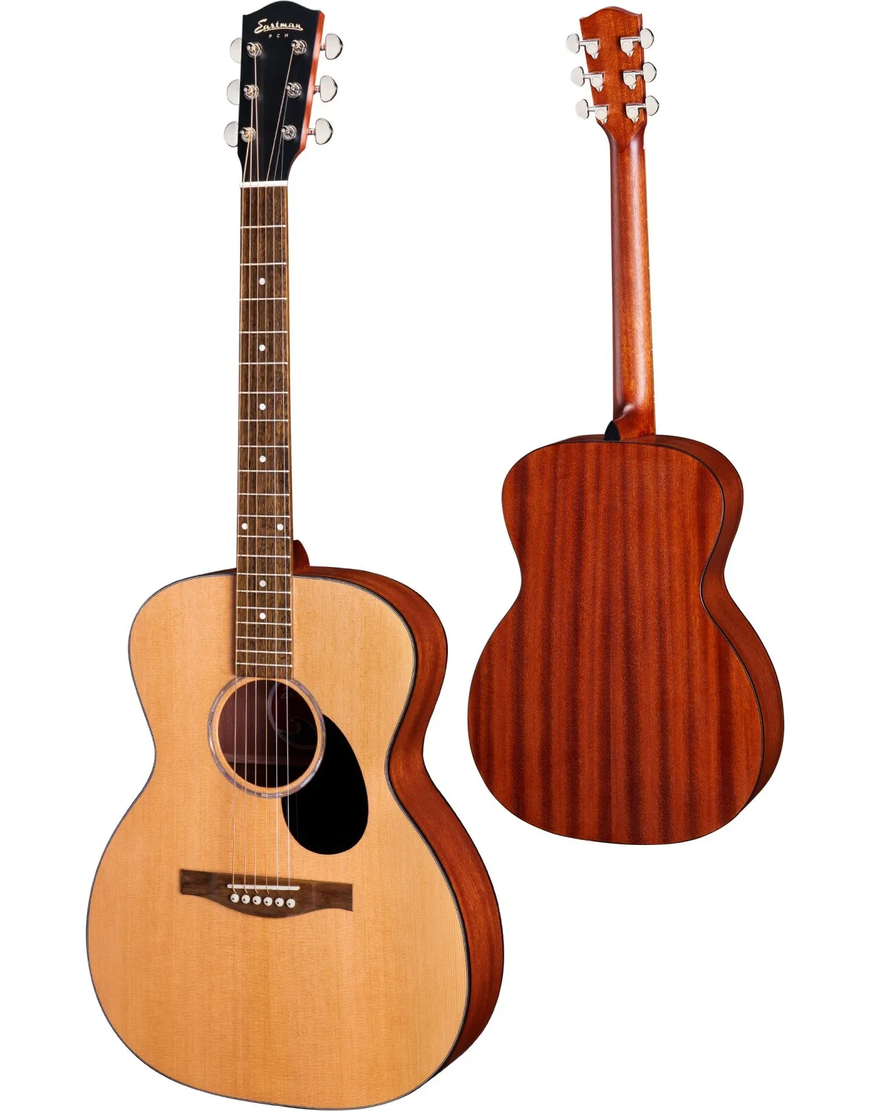 The Eastman PCH1-OM Thermo-Cured Solid Top Orchestra Acoustic Guitar Natural features a solid Thermo-Cured Sitka Spruce top, and laminated Sapele back & sides, for a naturally resonant and well-balanced acoustic tone. Eastman's thermal treatment gives the PCH1 the feel and tone of an aged-in guitar, delivering the perfect blend of fundamental tone and harmonics. The premium quality tonewoods look incredible with a Satin finish. A Traditional Even C-profile Okoume neck, with a Rosewood fretboard, offer smooth playability, and an orchestra model body shape give you hours of comfortable playability.