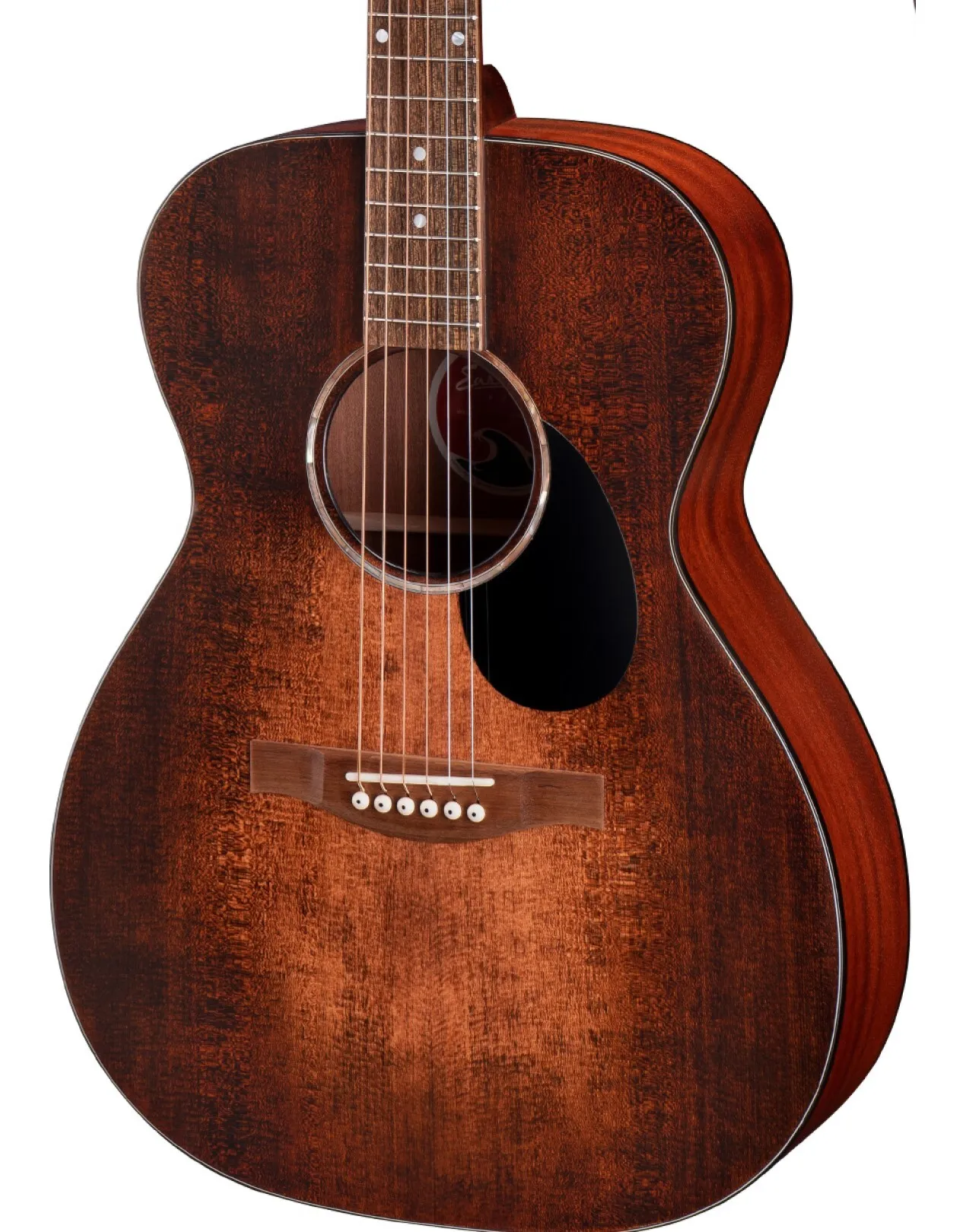 The Eastman PCH1-OM-CLA Thermo-Cured Solid Top Orchestra Acoustic Guitar Classic features a solid Thermo-Cured Sitka Spruce top, and laminated Sapele back & sides, for a naturally resonant and well-balanced acoustic tone. Eastman's thermal treatment gives the PCH1 the feel and tone of an aged-in guitar, delivering the perfect blend of fundamental tone and harmonics. The premium quality tonewoods look incredible with a Satin finish. A Traditional Even C-profile Okoume neck, with a Rosewood fretboard, offer smooth playability, and an orchestra model body shape give you hours of comfortable playability.