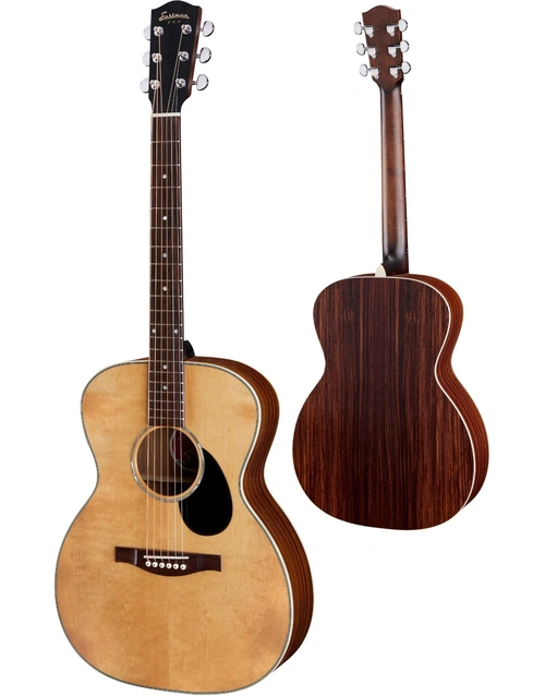 The Eastman PCH2-OM Thermo-Cured Solid Top Orchestra Acoustic Guitar Natural features a solid Thermo-Cured Sitka Spruce top, and laminated Rosewood back & sides, for a naturally resonant and well-balanced acoustic tone. Eastman's thermal treatment gives the PCH2 the feel and tone of an aged-in guitar, delivering the perfect blend of fundamental tone and harmonics. The premium quality tonewoods look incredible with a TrueTone Gloss Finish on the body and a TrueTone Satin finish on the neck. TrueTone is an environmentally friendly finish, with the same consistency and superior tonal characteristics as nitrocellulose. A Traditional Even C-profile Okoume neck, with a Rosewood fretboard, offer smooth playability, and an orchestra body shape give you hours of comfortable playability.