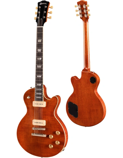 The Eastman SB56/TV-AMB is another amazing solid body guitar from Eastman. Featuring premium materials such as a one piece mahogany body, ebony fretboard and solid carved maple top, the SB56/TV-AMB exudes quality that far exceeds its price. The Lollar Custom Aged/Custom Wound Soapbar P-90's are smooth and thick, warm and fat. They are perfectly designed for vintage tones, huge blues licks and warm distorted rock tones. The rest of the electronics are high class, not normally found on instruments at this price - Sprague orange drop capacitors, Switchcraft switches and CTS pots. The Vintage Gloss TrueTone finish harkens back to the stylings of old, making the SB56 look and feel like a true vintage classic. TrueTone is an environmentally friendly finish, with the same consistency and superior tonal characteristics as nitrocellulose.