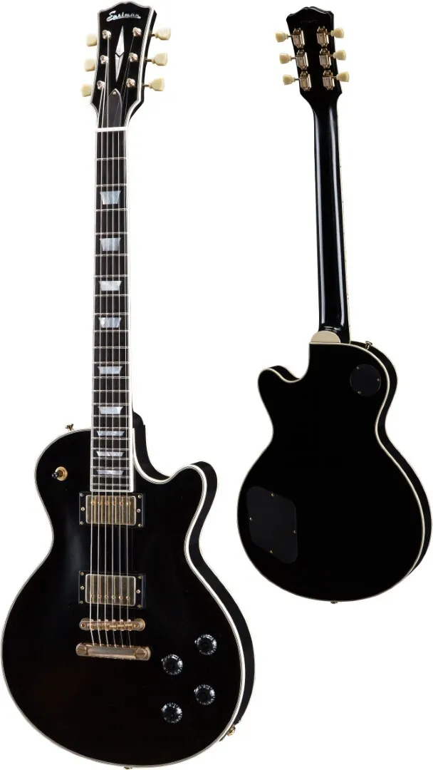 The Eastman SB57/N-BK Solid Body Electric Guitar, finished in Black, is the kind of guitar that you can't walk past, without stopping to pick it up and play, and not only due to its stunning Vintage Gloss Black TrueTone finish. TrueTone is an environmentally friendly finish, with the same consistency and superior tonal characteristics as nitrocellulose. With a one-piece Mahogany body, solid carved Maple top, one-piece Mahogany neck, and an Ebony fingerboard, the Eastman SB57/N-BK has all the hallmarks of a serious instrument, with the kind of rich and complex tone that first made you want to play guitar.