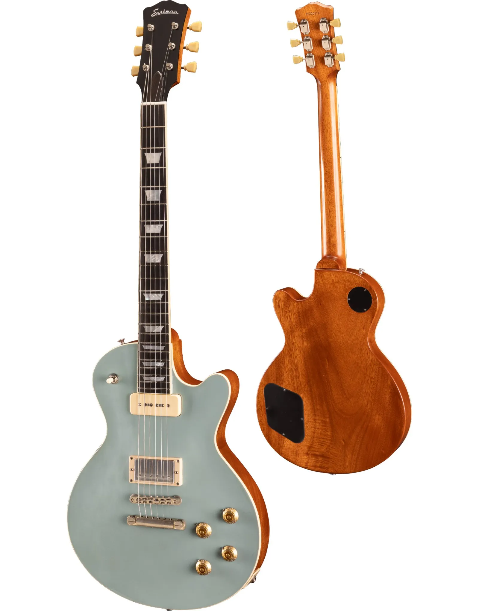 The Eastman SB58/TV-LTD-FB Limited Edition delivers vintage tone and boutique detail in a stunning Faded Blue Truetone Vintage Gloss finish. With a solid carved maple top and one-piece okoume back, this guitar resonates with rich sustain and clarity. The ebony fretboard and traditional “Even C” neck profile offer effortless playability. Loaded with a Lollar P90 in the neck and an Imperial humbucker in the bridge, this unique pickup pairing gives you the best of both classic single-coil and humbucking tones.