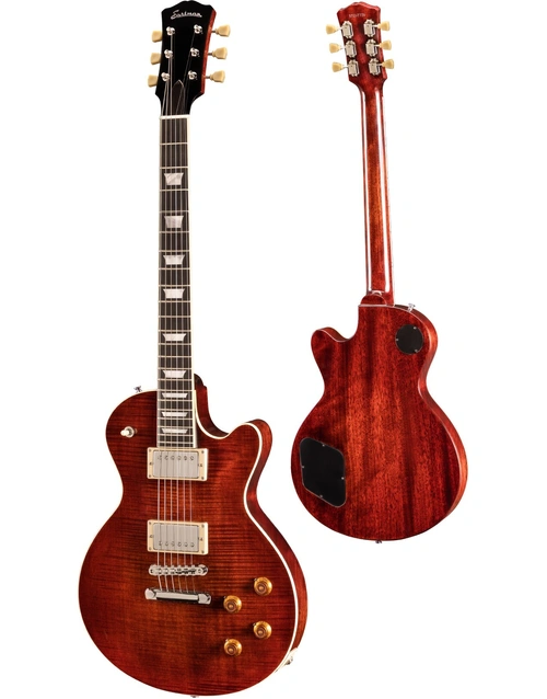 The Eastman SB59-CLA Solid Body Electric Guitar Classic is the kind of guitar that you can't walk past, without stopping to pick it up and play, and not only due to its stunning Gloss Classic TrueTone finish. TrueTone is an environmentally friendly finish, with the same consistency and superior tonal characteristics as nitrocellulose. With a one-piece Mahogany body, solid Flame Maple top, one-piece Mahogany neck, and an Ebony fingerboard, the Eastman SB59-CLA has all the hallmarks of a serious instrument, with the kind of rich and complex tone that first made you want to play guitar.
