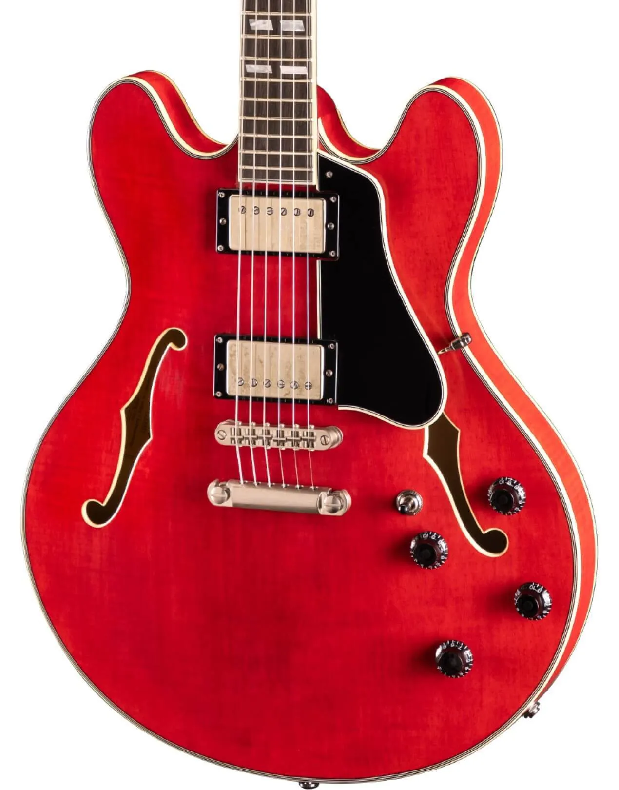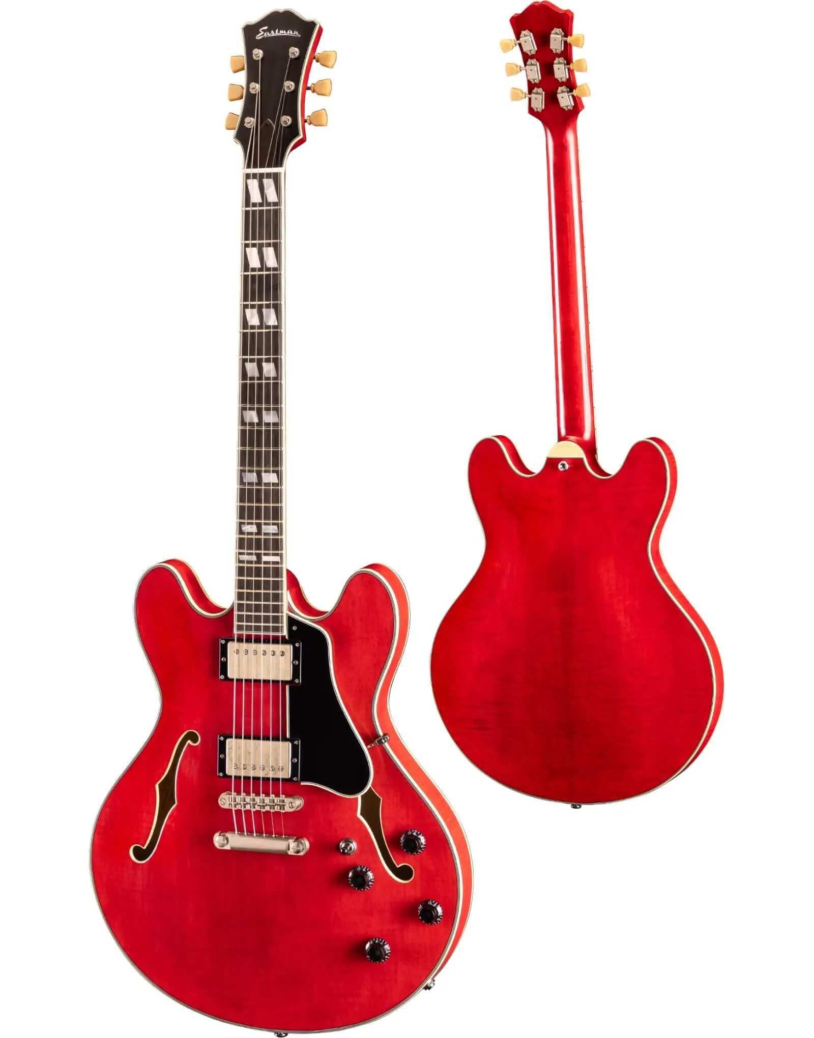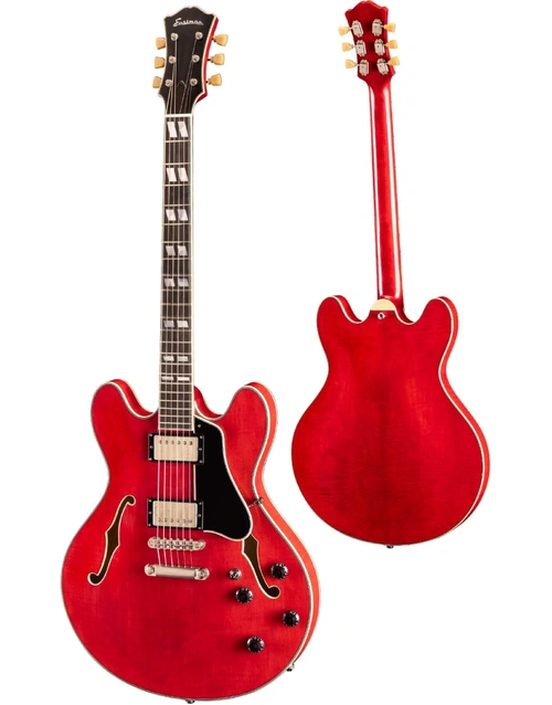 At Riffs & Licks Music, we think the Eastman T59/TV 16" Deluxe Thinline Hollowbody, finished in Truetone Vintage Red, is an incredible vintage-style instrument, with P.A.F. tone, buttery playability, gorgeous aesthetics, and premium quality contemporary features and appointments, at an affordable price.