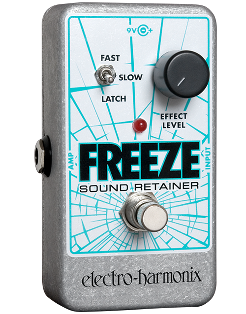 Capture a frozen moment and turn it into a tonally unique sonic foundation. The EHX Freeze Sound Retainer delivers infinite sustain of any note or chord at the press of a momentary footswitch. Release the footswitch and you are again sample ready. Three selectable decay rates, including a latch mode, guarantee liquid, smooth tonal transitions. Hook the Freeze up with your favorite pedals for a sonic collage that will be unlike anything you have ever heard. It’s like adding an extra musician to the band.