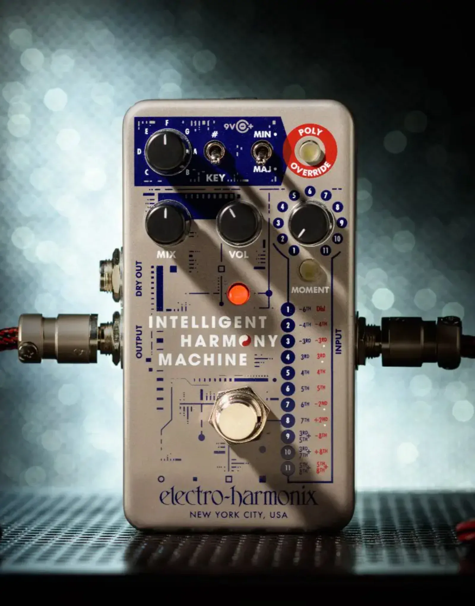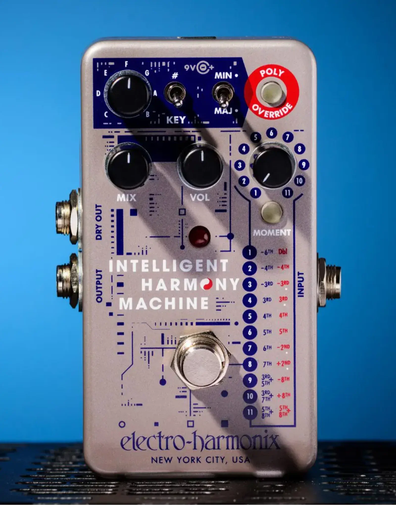 The Electro-Harmonix Intelligent Harmony Machine Digital Harmoniser / Pitch Shifter Pedal creates flawless, real-time harmonies that transform your single-guitar performance into a full ensemble. Choose from diatonic harmonies across all 12 keys or polyphonic pitch shifts that track chords and single notes with exceptional precision. With eleven harmony intervals, from subtle thirds to dramatic octave jumps, plus dual- and triple-harmony options, it offers a vast palette of creative possibilities. Momentary Mode allows expressive sweeps or instant pitch shifts, while the Mix control blends your dry and shifted tones seamlessly. Compact, versatile, and musical, it’s ideal for crafting layered solos or adding rich textures live or in the studio.