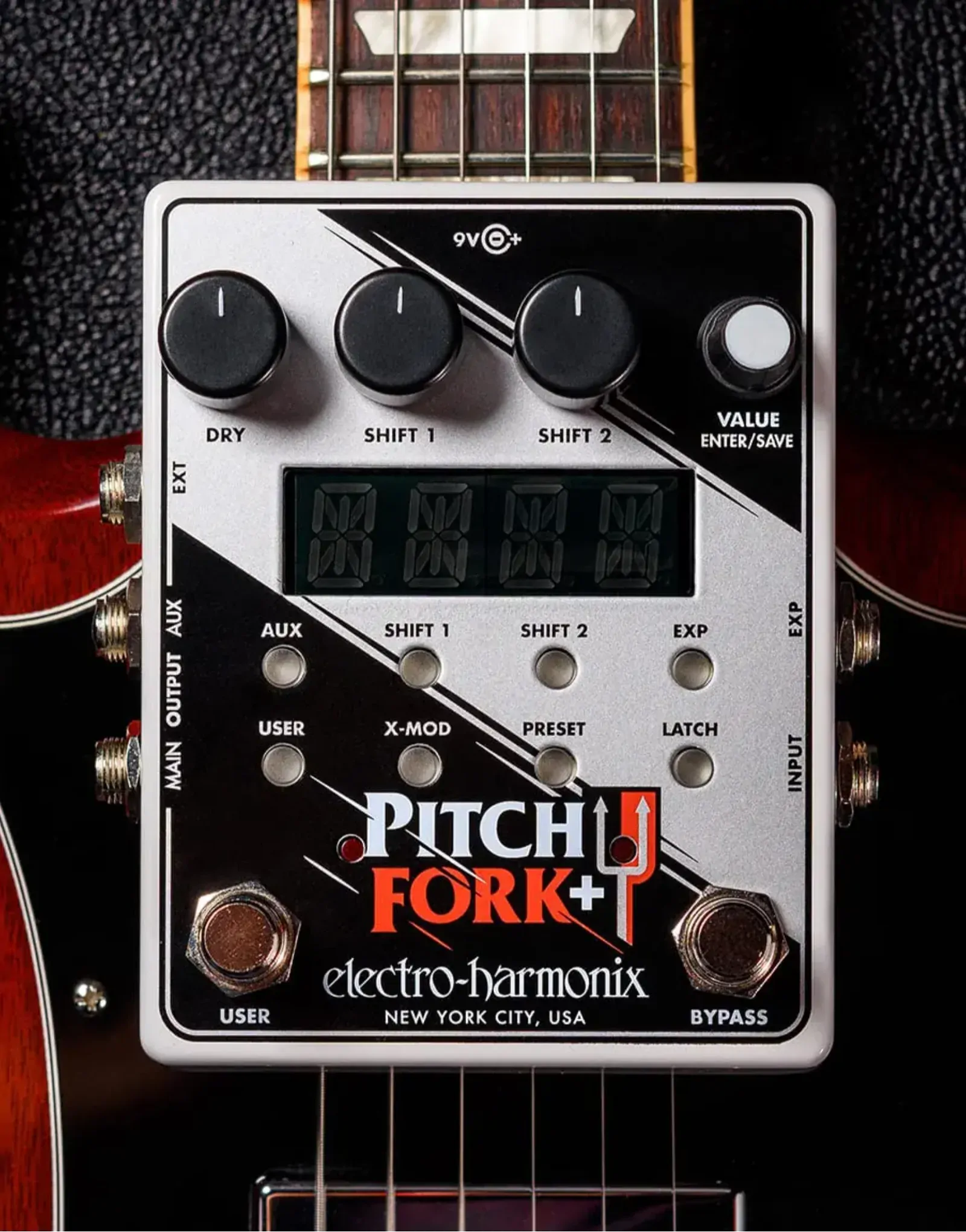 The Electro-Harmonix Pitch Fork + (Plus) Digital Polyphonic Pitch Shifter Pedal expands the power of the original with two independent pitch engines offering up to three octaves of pitch shift in either direction. With dedicated volume controls for both shifted voices and your dry signal, it provides precise tonal balance for harmonies, detuning, and layered textures. Ten factory presets and space for 100 user programs allow instant recall of your favourite settings, while expression and external footswitch inputs deliver deep real-time control. Featuring exceptional tracking, cross-modulation effects, and flexible routing, the Pitch Fork + is built for creative performers who demand versatility and accuracy.