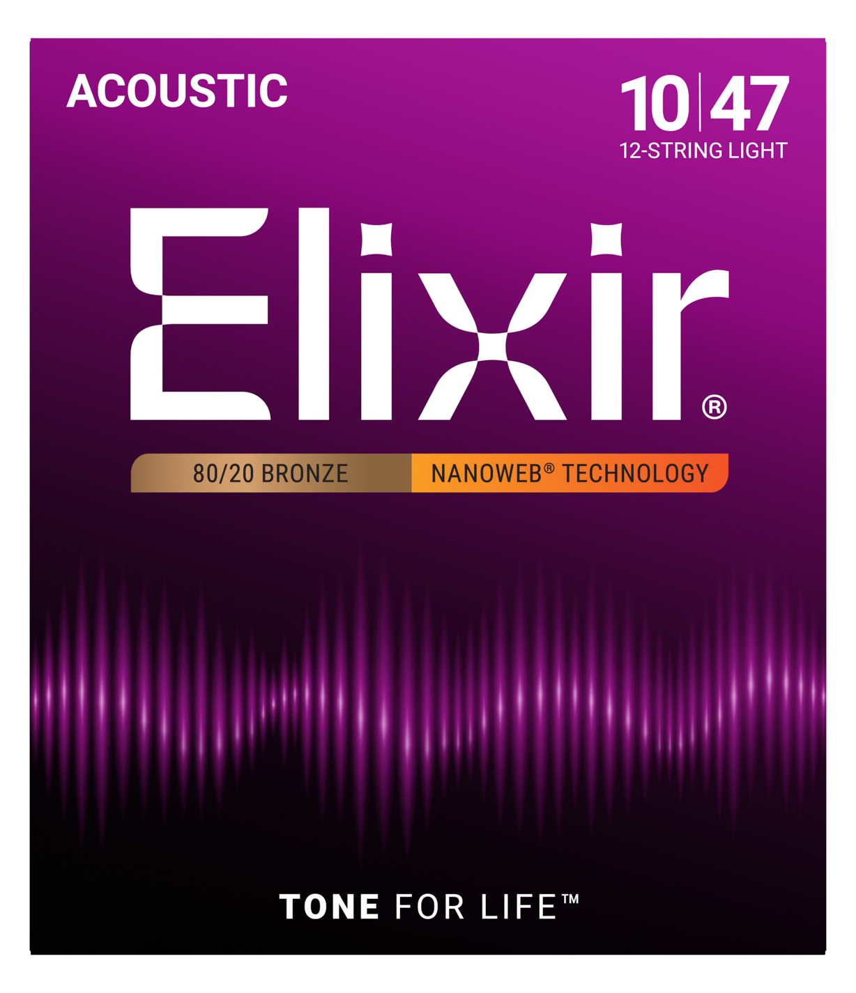 Elixir Acoustic Nanoweb 80/20 12 String Light 10-47 Guitar Strings - 11152