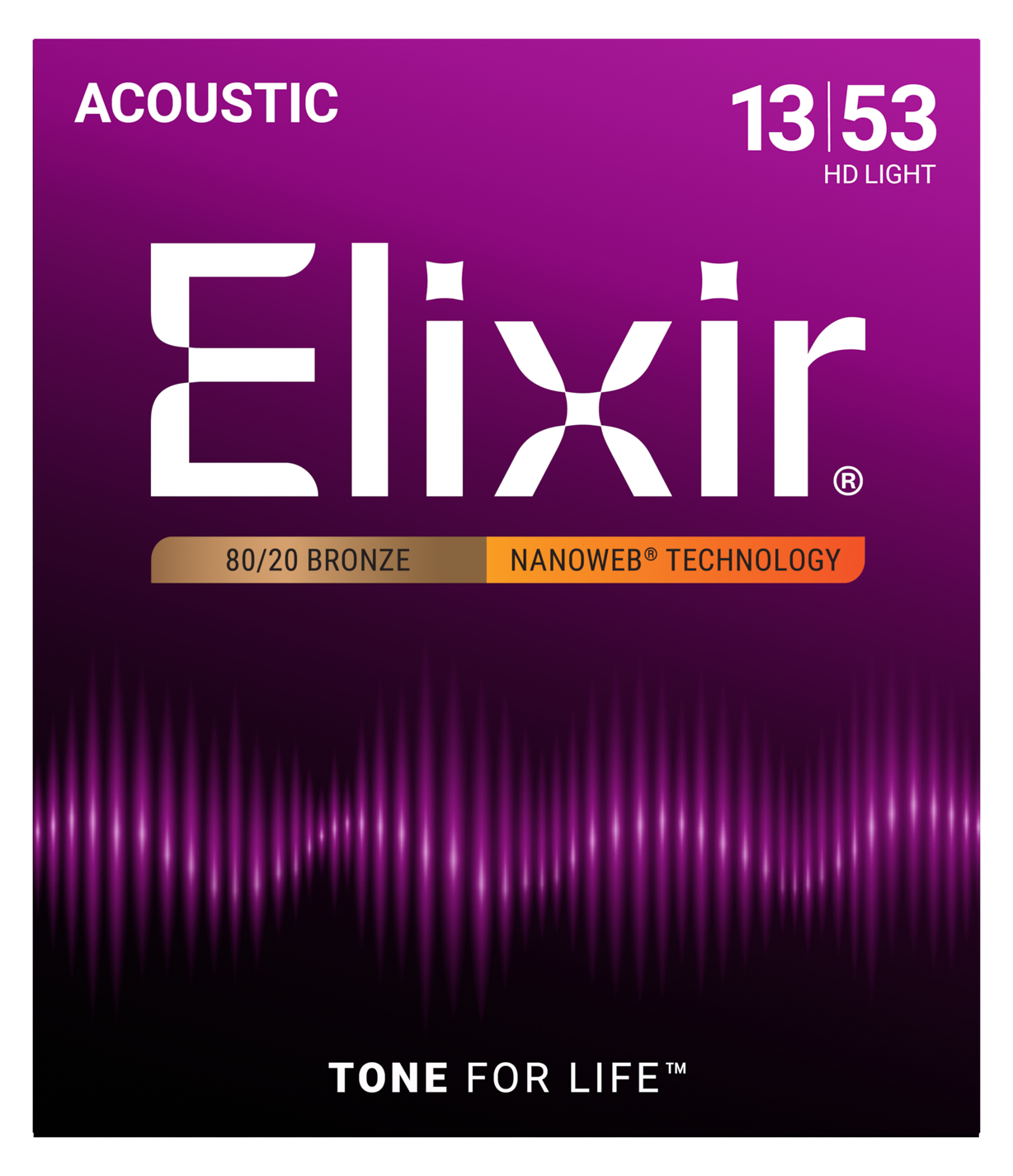 Elixir Acoustic Nanoweb 80/20 HD Light 13-53 Guitar Strings - 11182