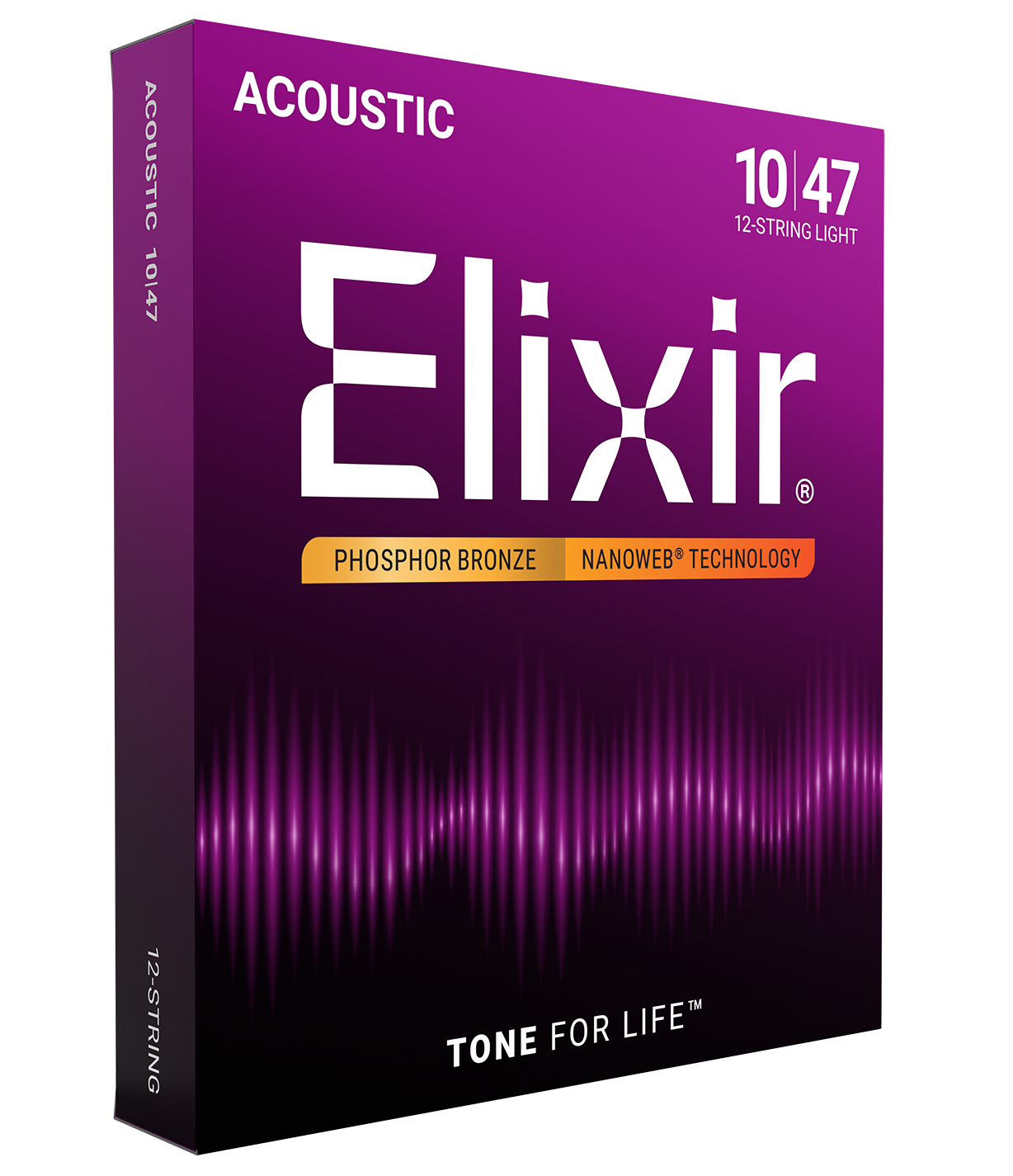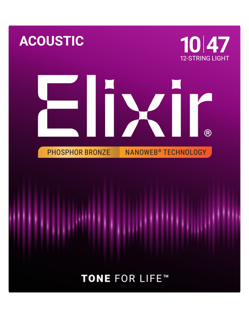 Elixir Acoustic Nanoweb Phosphor Bronze 12 String Light 10-47 Guitar Strings - 16152