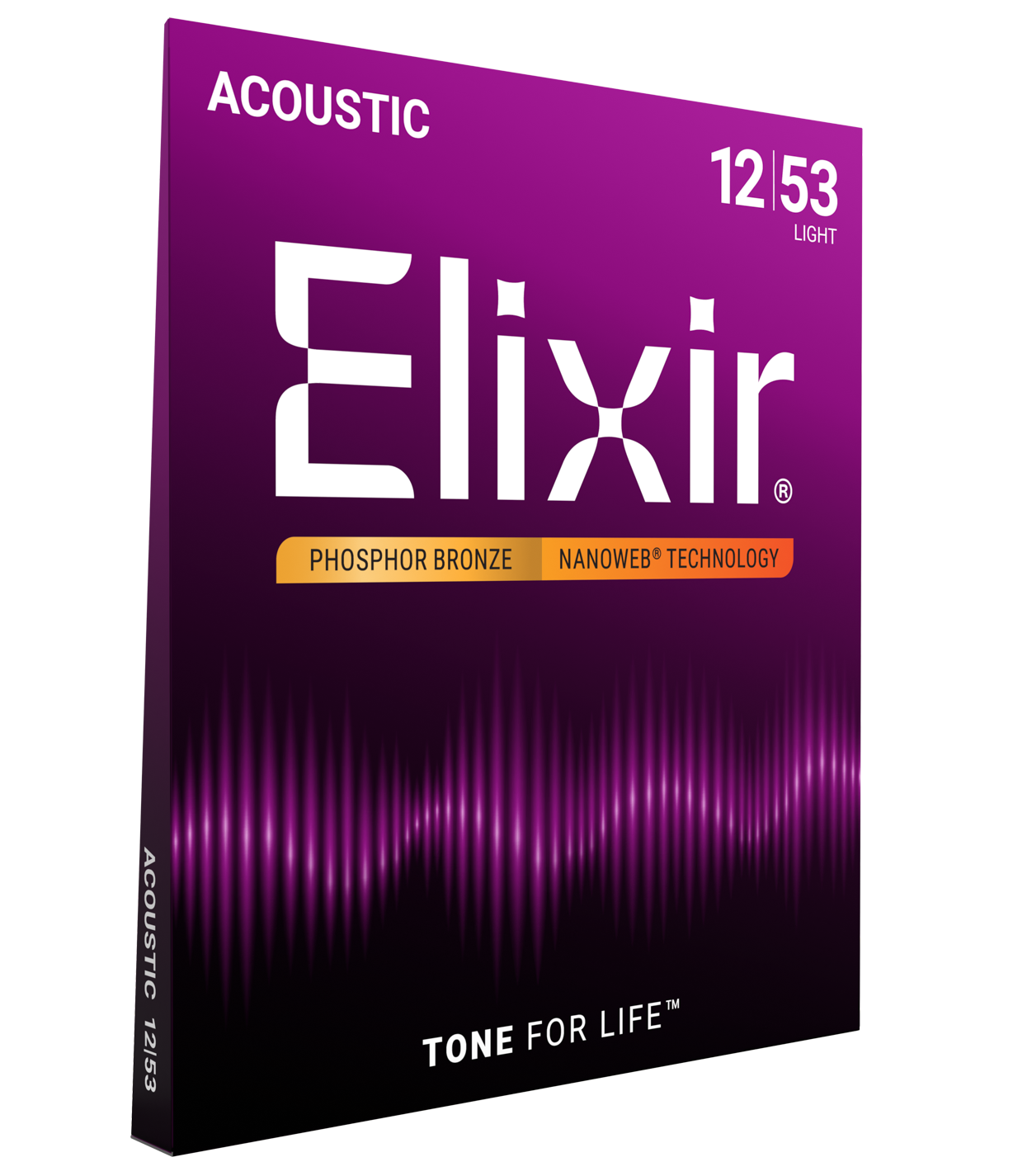 Elixir Acoustic Nanoweb Phosphor Bronze Light 12-53 strings offer the longest lasting tone, night after night. These strings provide the distinctive warmth and sparkle of phosphor bronze with the extended tone life that Elixir Strings are famous for. The NANOWEB coating protects the entire string with an ultra-thin layer, preventing gunk buildup and maintaining consistent performance.