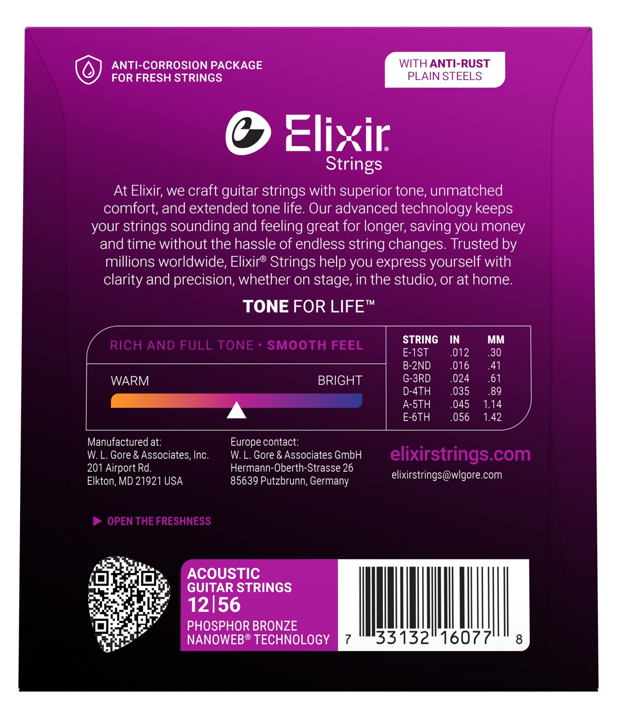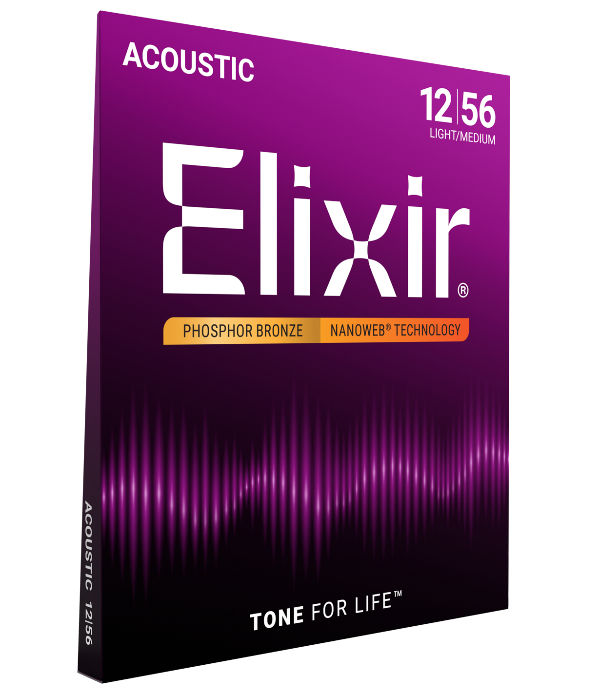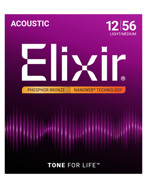 Elixir Acoustic Nanoweb Phosphor Bronze Light Medium 12-56 Guitar Strings - 16077