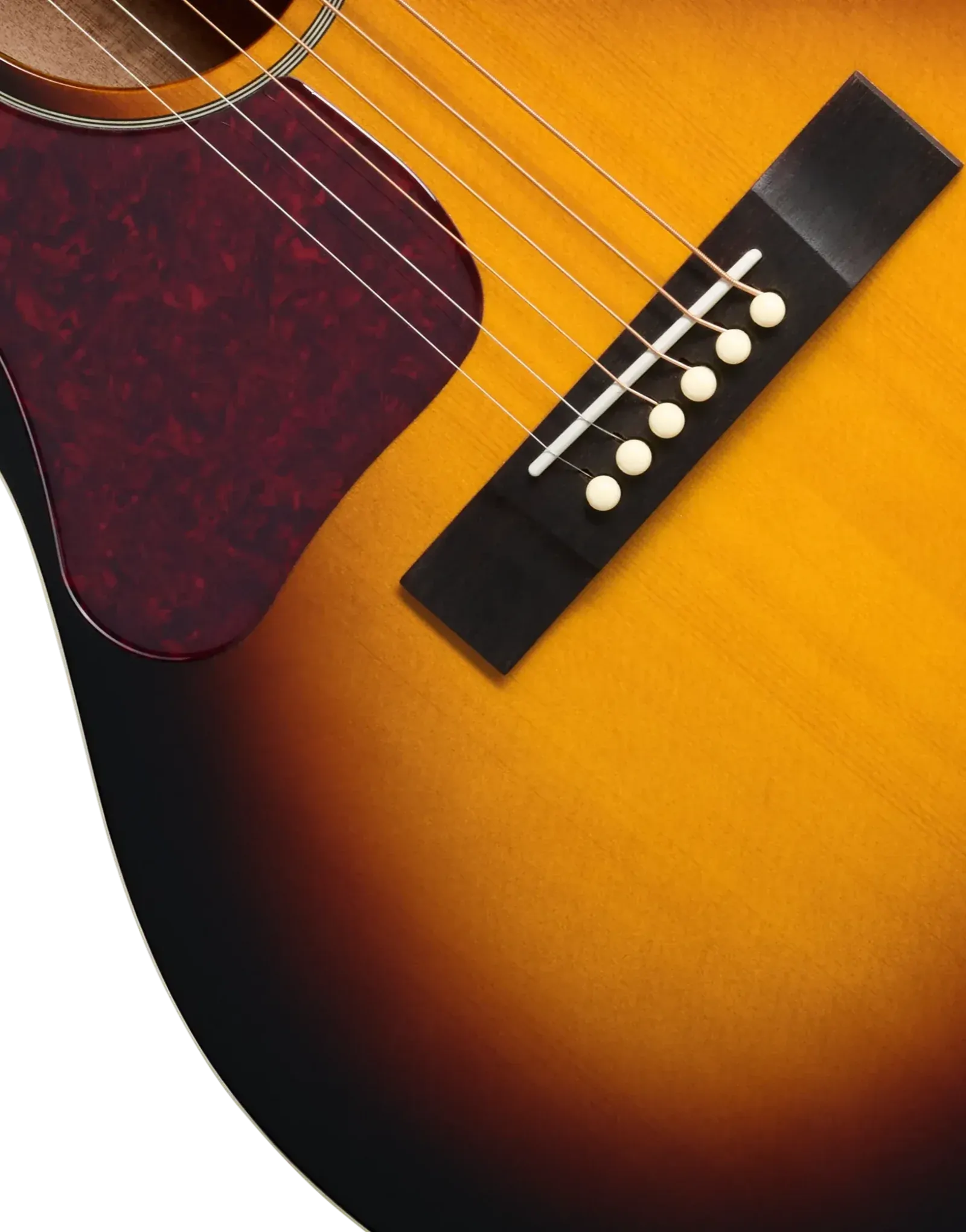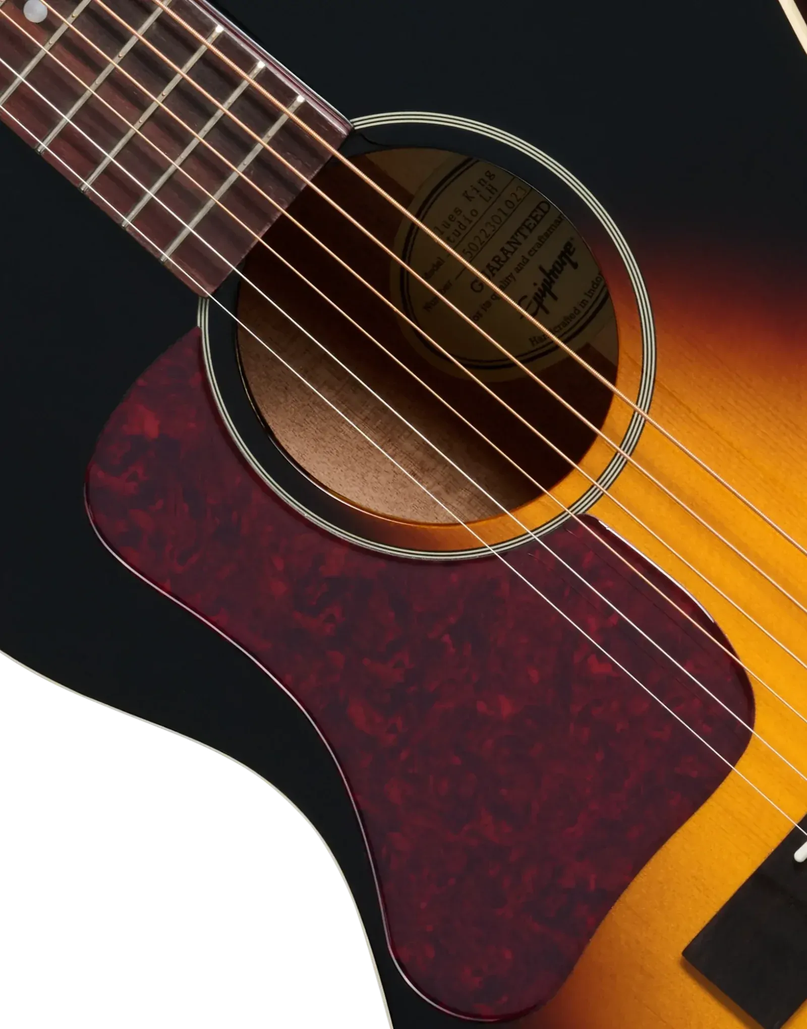 The Epiphone Blues King Studio L-00 Left-Handed delivers the vintage tone and style of a traditional parlour acoustic in a modern, stage-ready instrument. Its compact L-00 body and short 24.75" scale length make it comfortable to play while maintaining a strong, focused tone ideal for blues, folk, and Americana. A solid spruce top with layered mahogany back and sides offers a warm, balanced voice that improves with age, while the mahogany neck with a Rounded C profile and rosewood fingerboard ensures smooth playability. Fishman S-Core electronics with a Presys VT preamp provide natural-sounding amplification, perfect for performing or recording. Finished in Dark Burst with vintage-style details like an L-00 pickguard, ivory-button tuners, and Kalamazoo headstock, it’s a faithful tribute to classic small-body acoustics, complete with a gig bag.